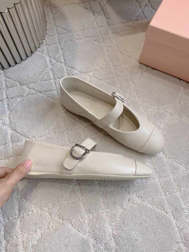 / 出厂价P Ferragam*新款平底玛丽珍鞋 后跟可踩脚 设计非常精致 每一个细节都充满了艺术感 软软的云朵脚感 颜值与舒适并存 鞋面超软小羊皮 Zp开模五金扣