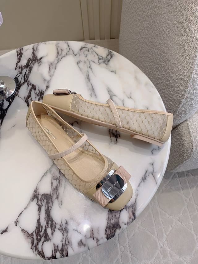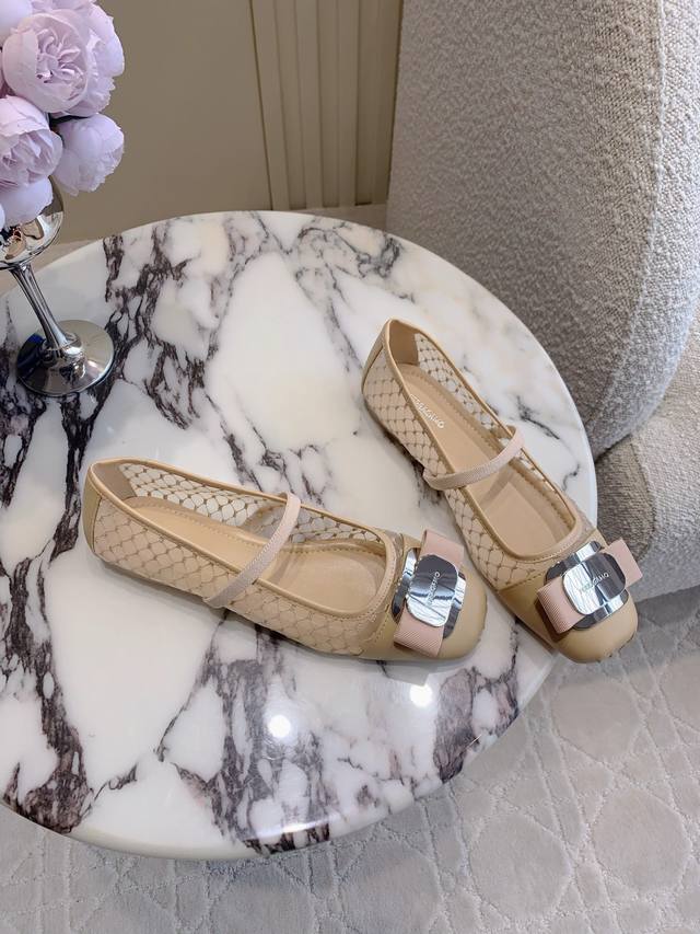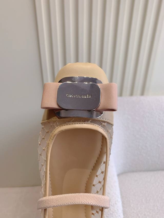 出厂价p Ferragam*新款网纱芭蕾舞鞋 设计非常精致 每一个细节都充满了艺术感 软软的云朵脚感 颜值与舒适并存 鞋面网布拼接羊皮 Zp开模五金扣 垫脚羊皮