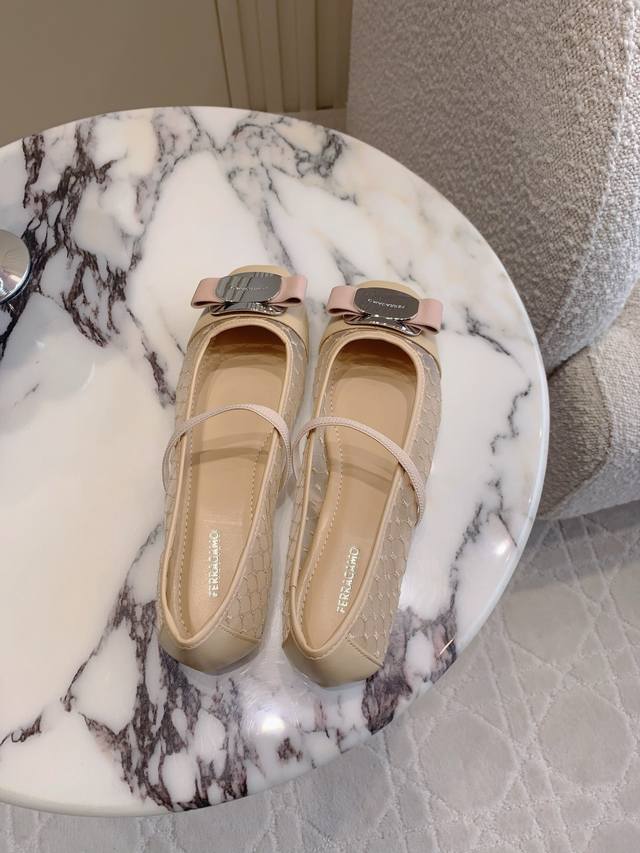 出厂价P Ferragam*新款平底玛丽珍鞋 后跟可踩脚 设计非常精致 每一个细节都充满了艺术感 软软的云朵脚感 颜值与舒适并存...