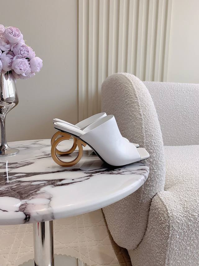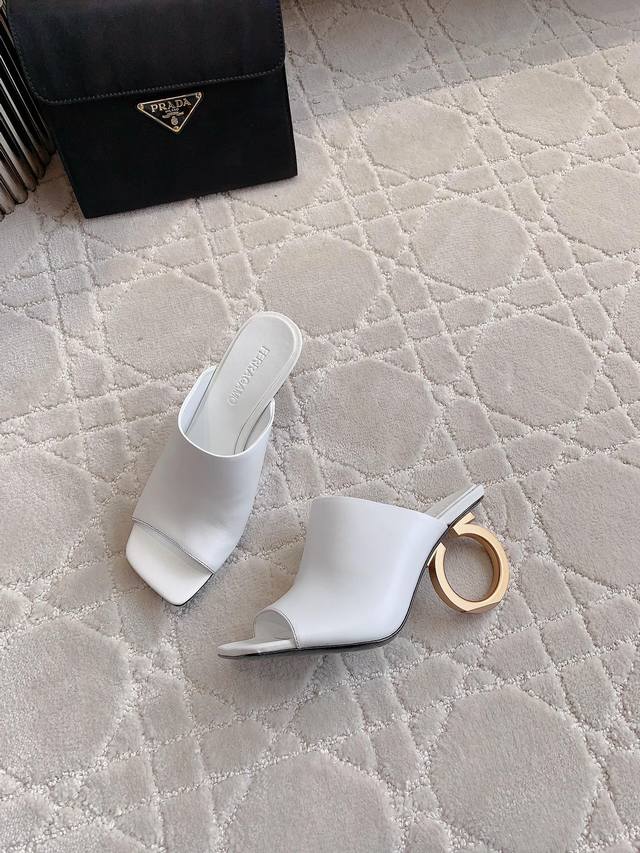 出厂价p Ferragam*新款高跟凉拖鞋 明星同款 雕塑感的大Logo鞋跟为品牌精髓添注新生 造型别致 凸显性感线条 别出心裁 鞋面小牛皮 内里垫脚羊皮 意大