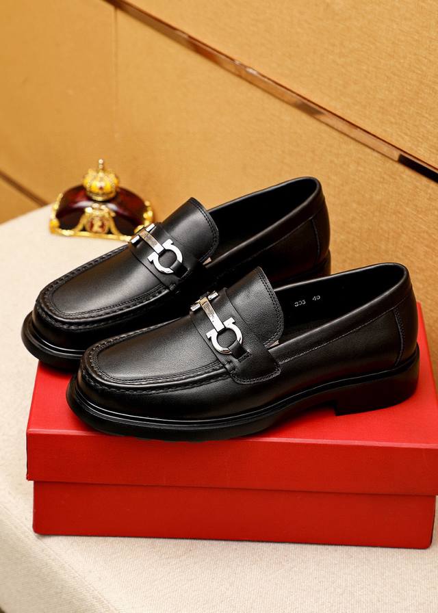 / 商品商标: 菲拉格慕 休闲皮鞋 正码码数: 38-44 45.46订制 商品材料:精选 进口头层小牛皮鞋面+奢华五金扣,进口水染牛皮内里。强烈立体视觉效果,原版