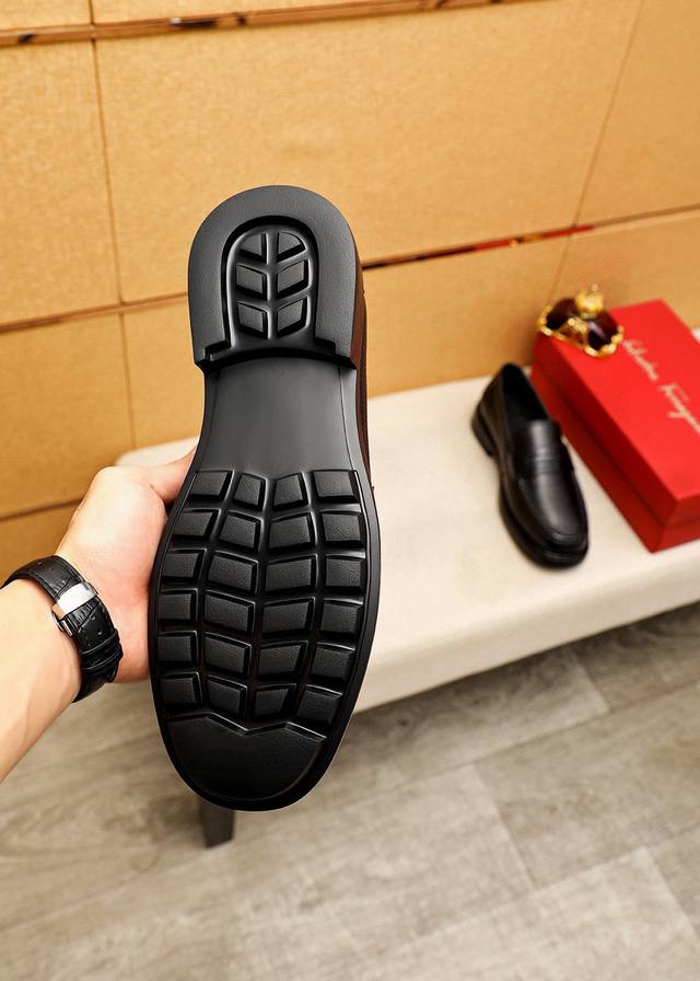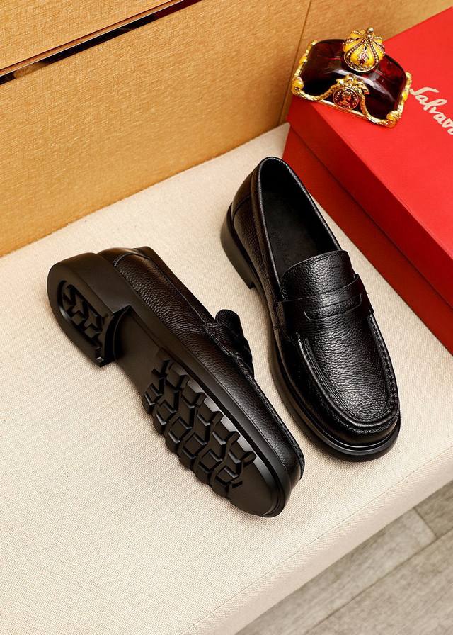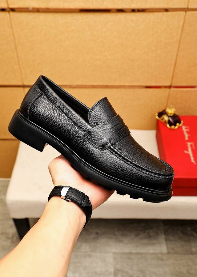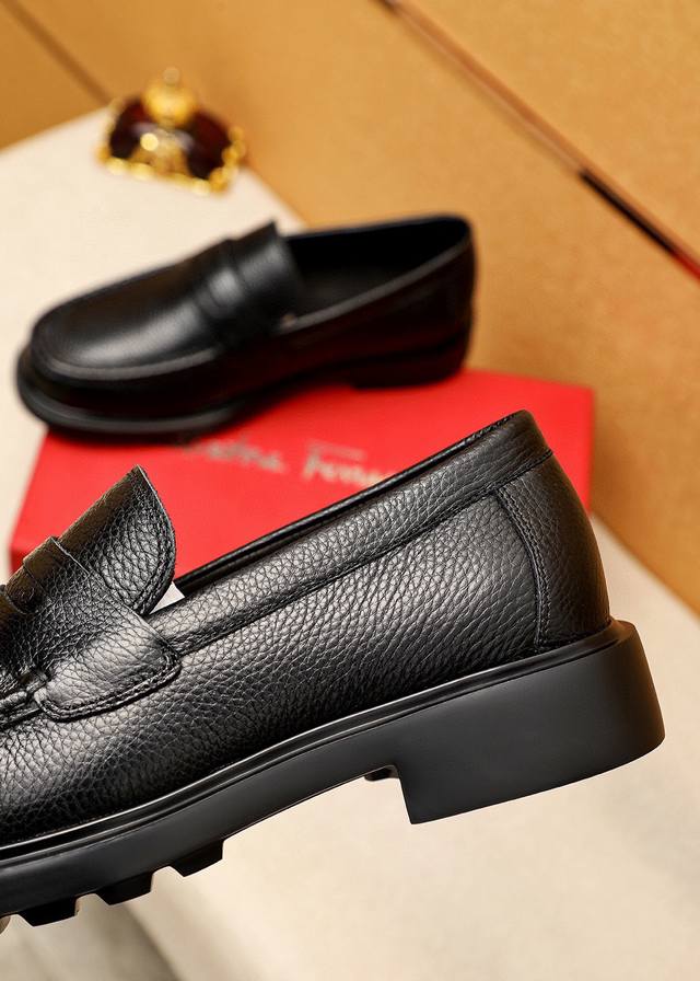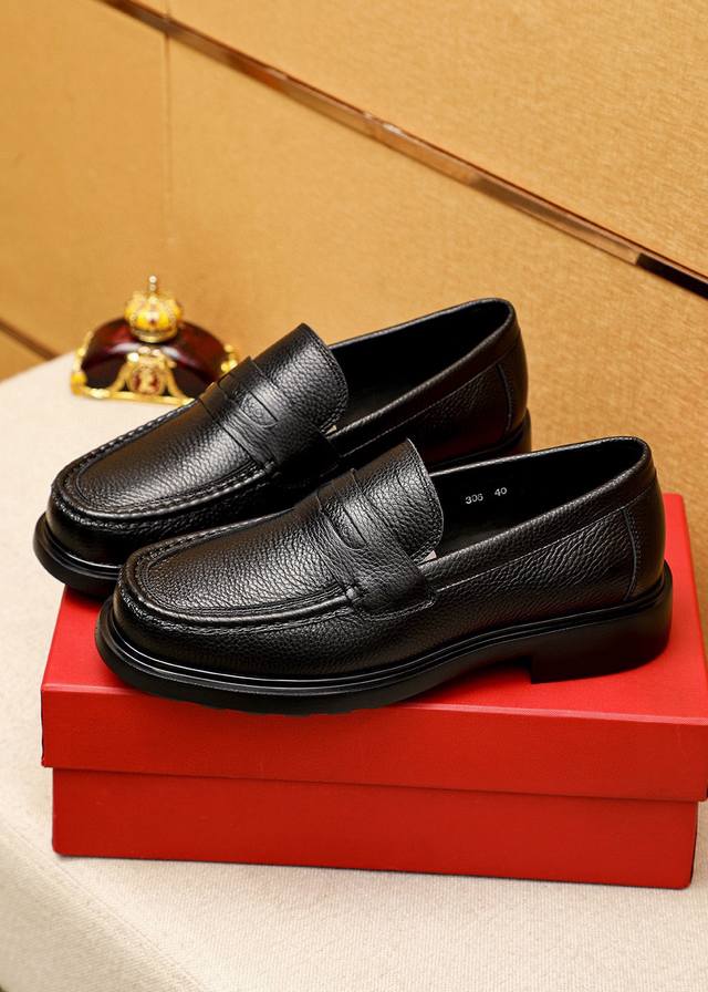 商品商标: 菲拉格慕 休闲皮鞋 DDD 正码码数: 38-44 45.46订制 DDD 商品材料:精选 进口头层荔枝纹小牛皮鞋面,进口水染牛皮内里。强烈立体视觉效果,原版发泡大底 DDD 颜 色:3色可选 DDD