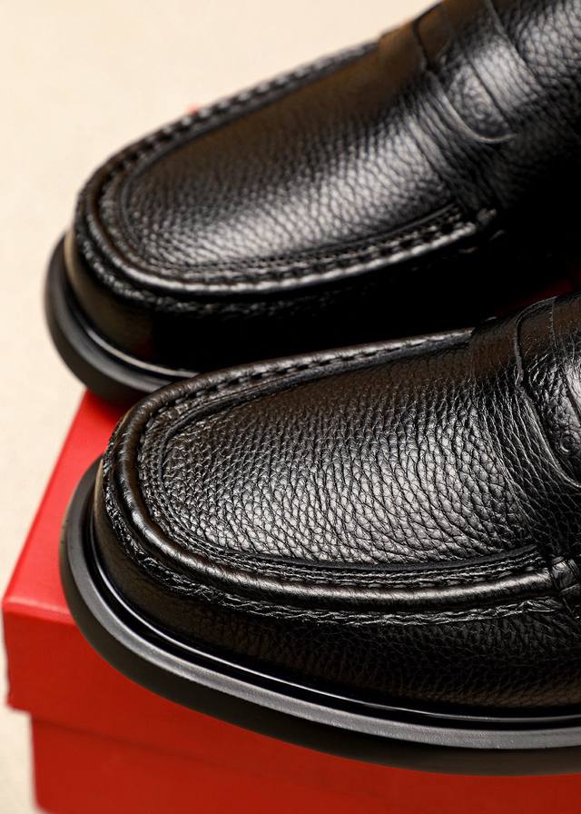/ 商品商标: 菲拉格慕 休闲皮鞋 正码码数: 38-44 45.46订制 商品材料:精选 进口头层荔枝纹小牛皮鞋面,进口水染牛皮内里。强烈立体视觉效果,原版发泡大