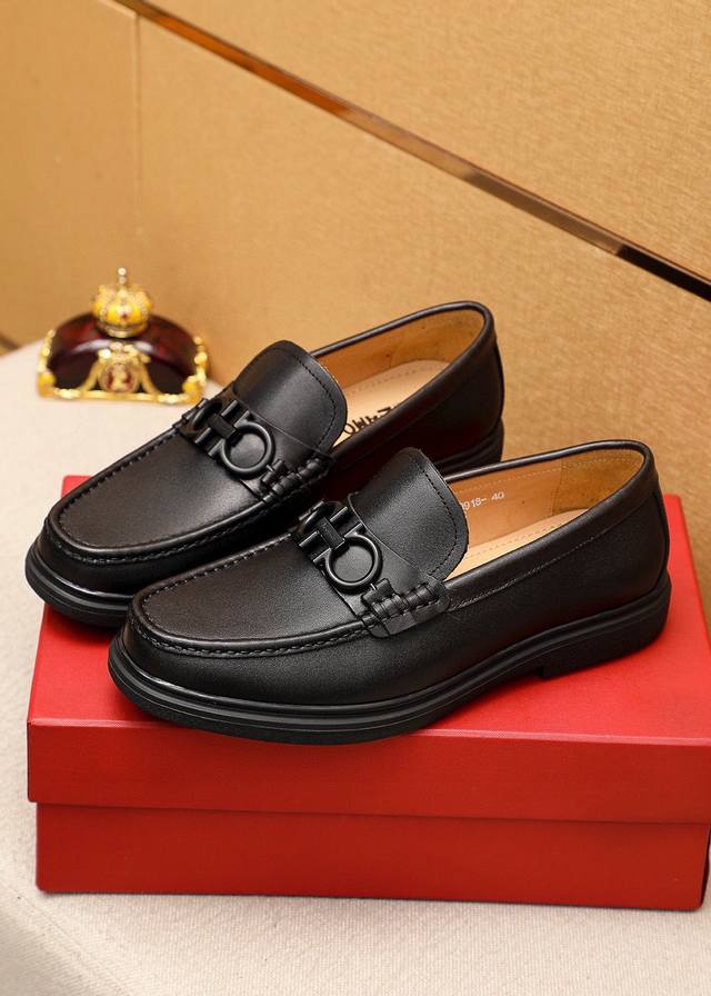 商品商标:Ferragamo 菲拉格慕 休闲皮鞋 正码码数: 38-44 45订制 商品材料:精选 进口头层小牛皮鞋面+奢华五金扣,进口水染牛皮内里。强烈立体视