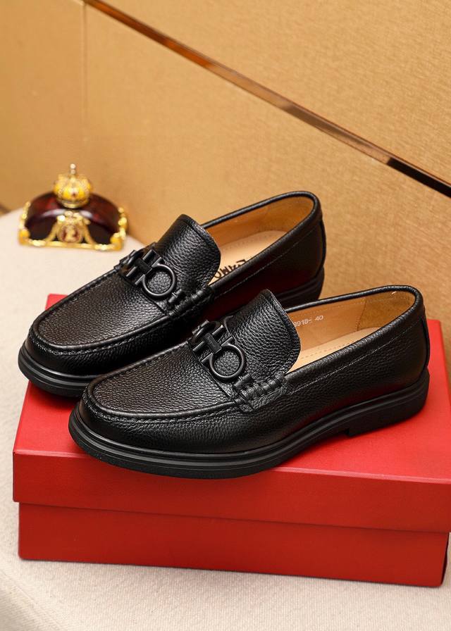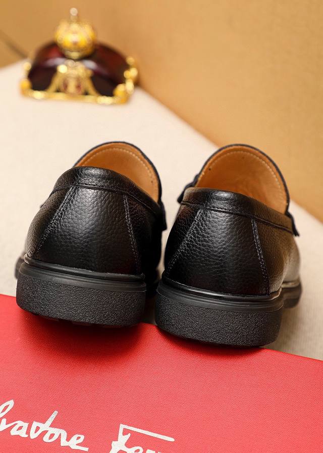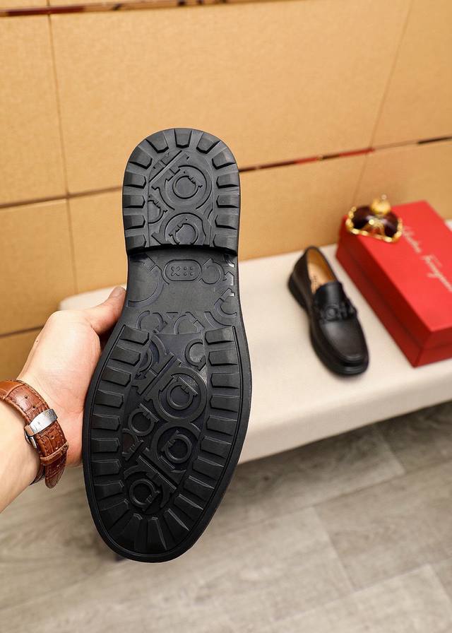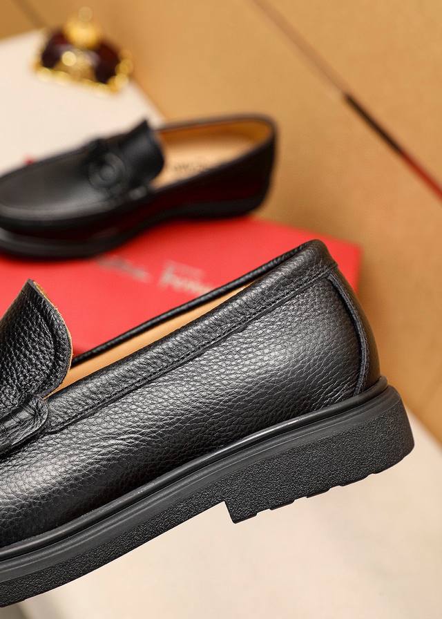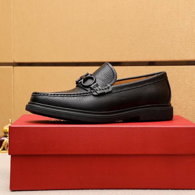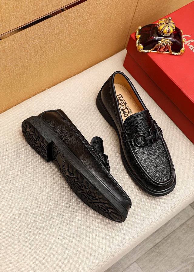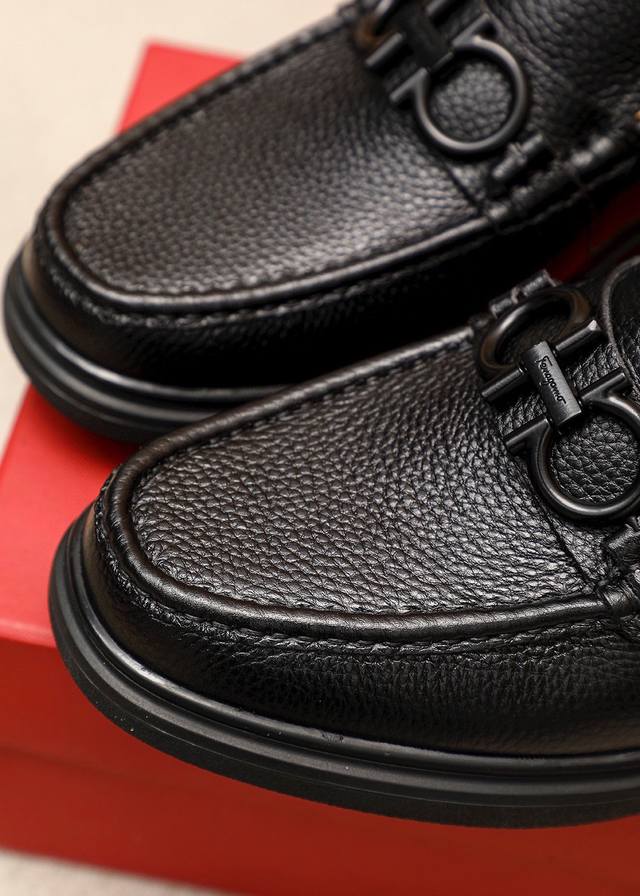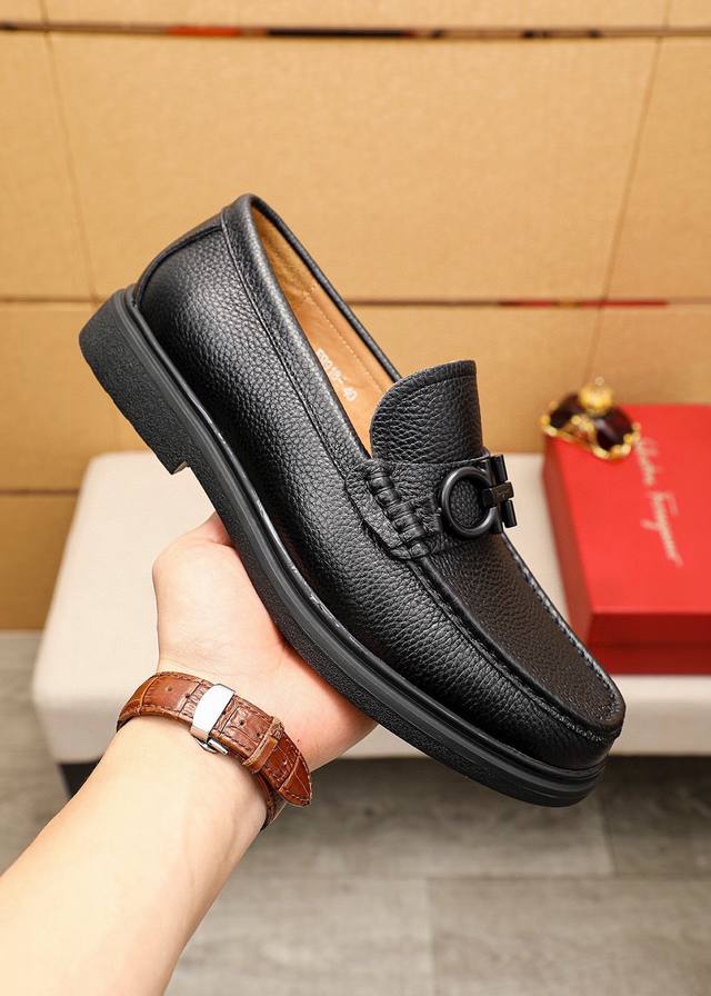 商品商标:Ferragamo 菲拉格慕 休闲皮鞋 DDD 正码码数: 38-44 45订制 DDD 商品材料:精选 进口头层荔枝纹牛皮鞋面+奢华五金扣,进口水染牛皮内里。强烈立体视觉效果,原版大底 DDD 颜 色:3种皮料可选 DDD
