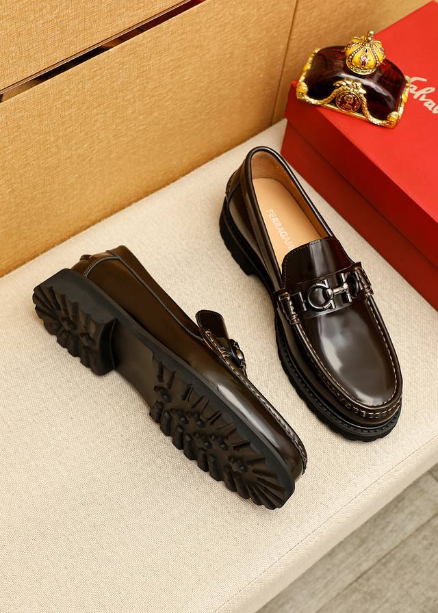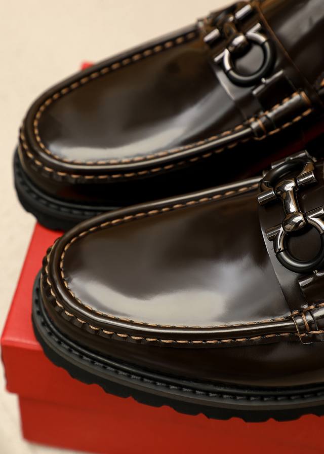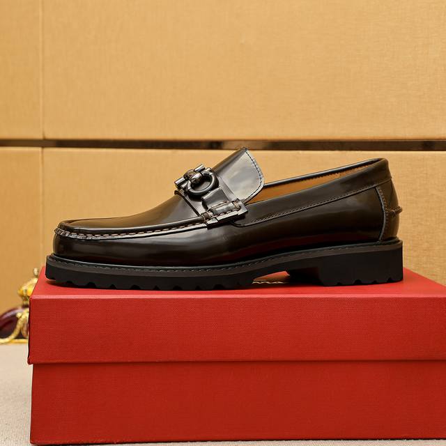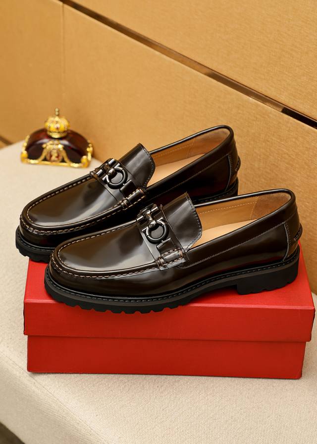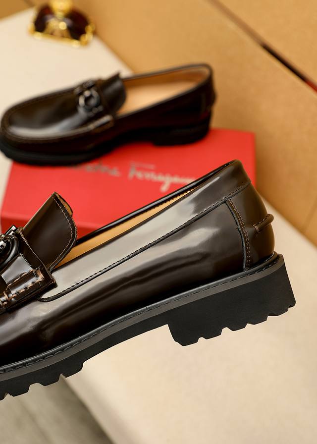 商品商标:Ferragamo 菲拉格慕 休闲皮鞋 正码码数: 38-44 45.46订制 商品材料:精选 进口开边珠牛皮鞋面+经典五金扣,进口水染牛皮内里。强烈