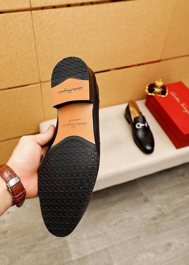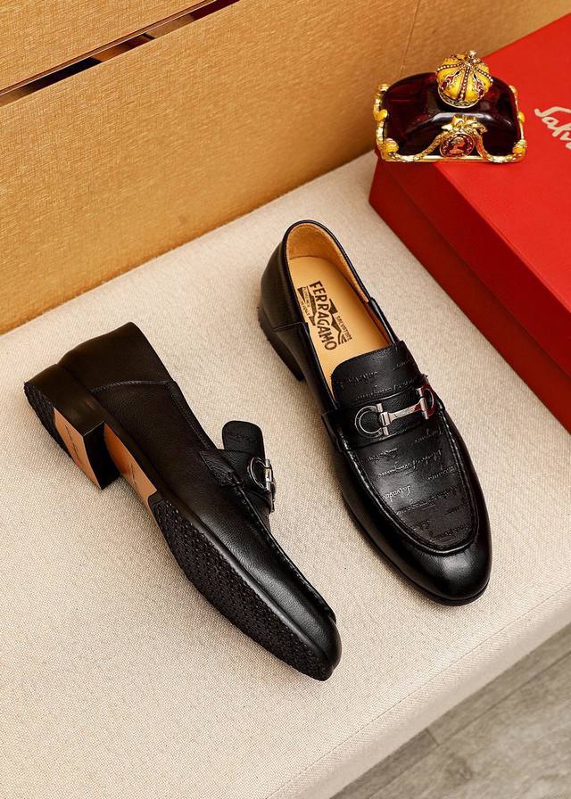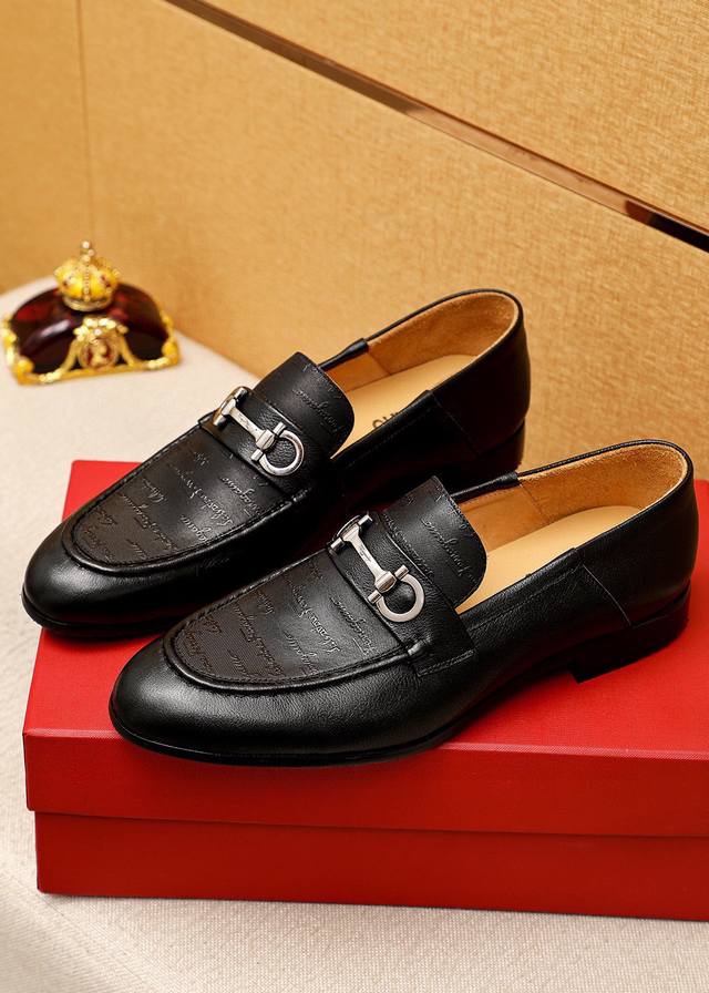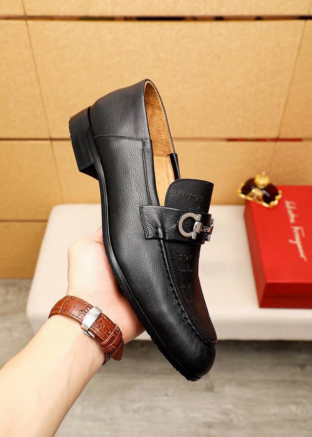 / 商品商标:Ferragamo 菲拉格慕 休闲皮鞋 正码码数: 38-44 45.46.47订制 商品材料:精选 进口头层小牛皮压花鞋面+奢华五金扣,进口水染牛皮