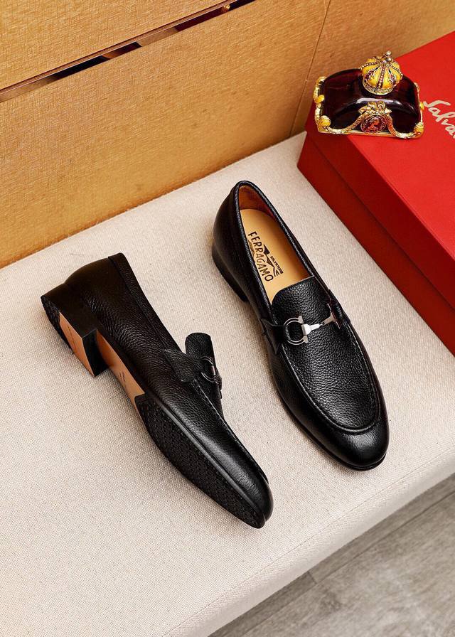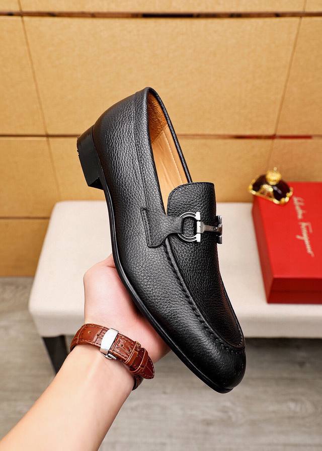/ 商品商标:Ferragamo 菲拉格慕 休闲皮鞋 正码码数: 38-44 45.46.47订制 商品材料:精选 进口头层荔枝纹牛皮鞋面+奢华五金扣,进口水染牛皮