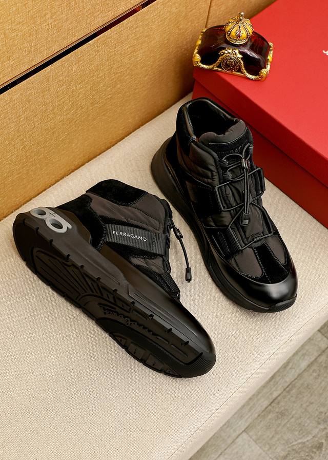 / 商品商标:Ferragamo 菲拉格慕 高帮休闲鞋 正码码数: 38-44 45.46定做 商品材料:精选 磨砂牛皮拼接布鞋面 牛皮内里 原版大底 颜色:5色可