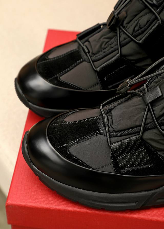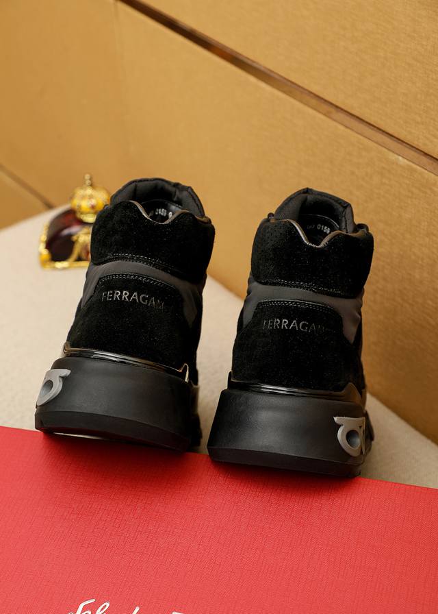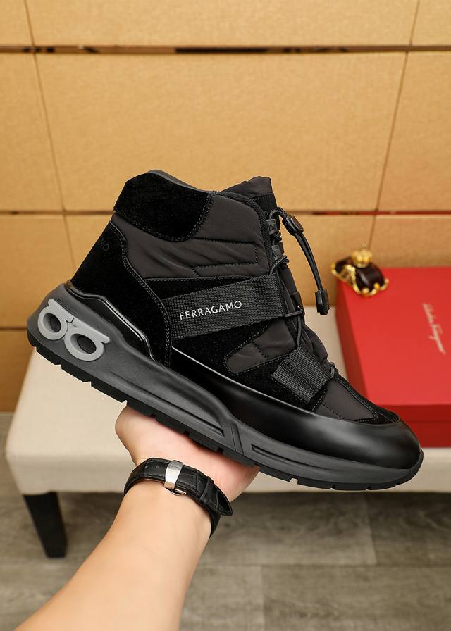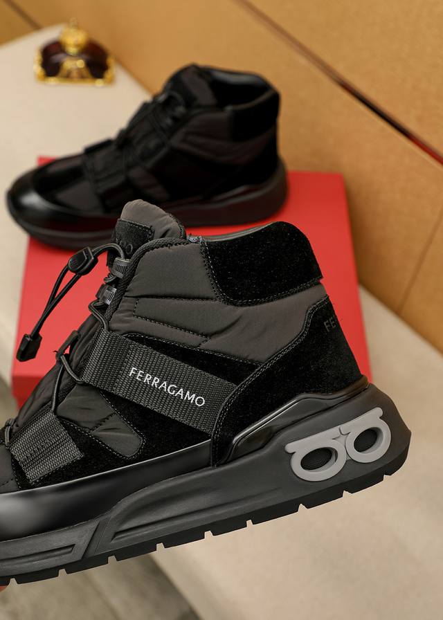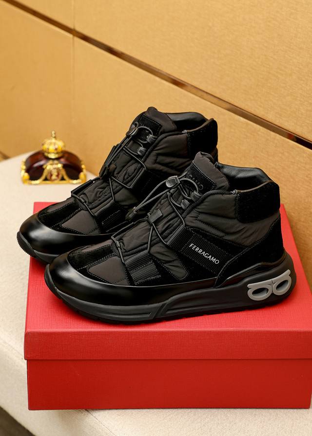 商品商标:Ferragamo 菲拉格慕 高帮休闲鞋 DDD 正码码数: 38-44 45.46定做 DDD 商品材料:精选 磨砂牛皮拼接布鞋面 牛皮内里 原版大底 DDD 颜色:5色可选 DDD