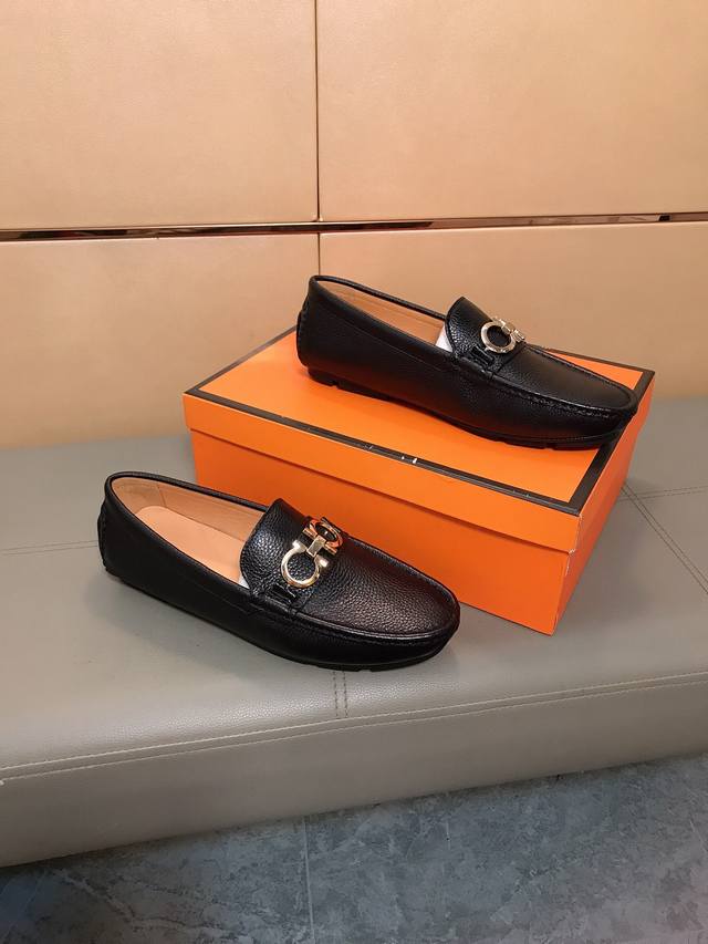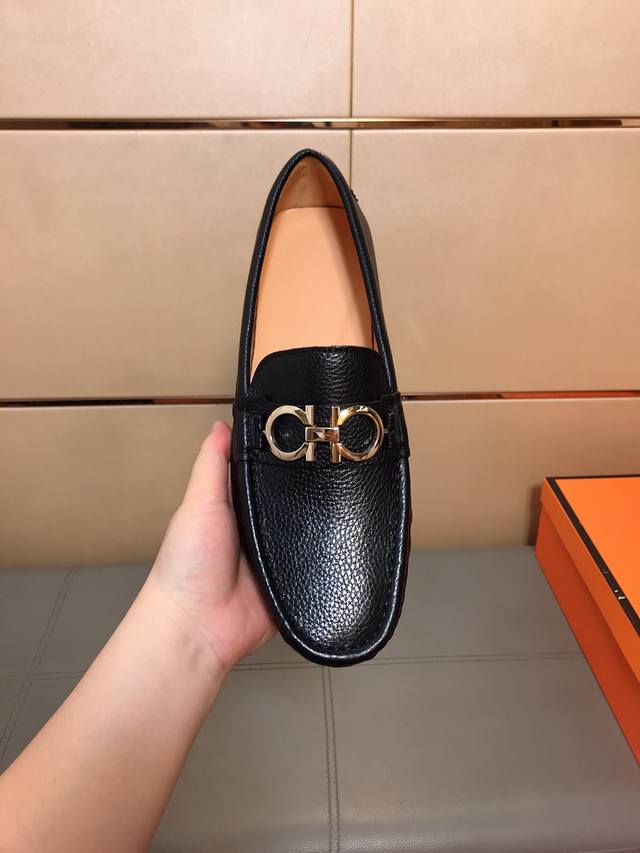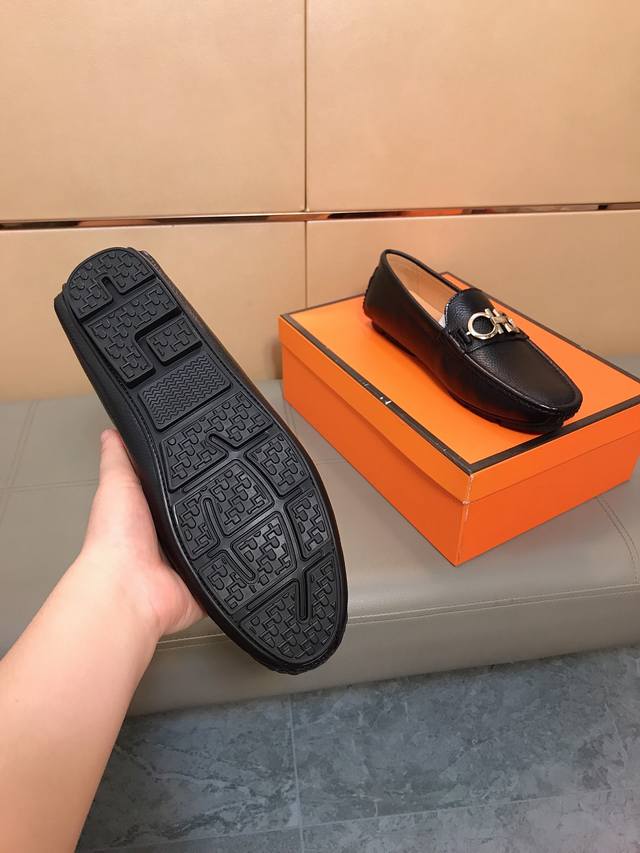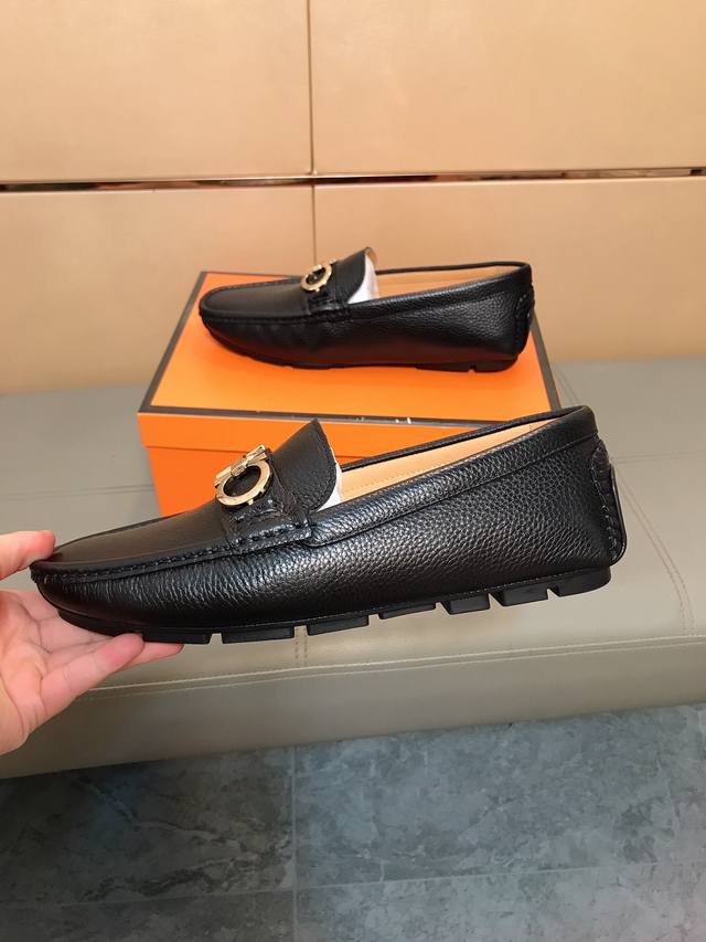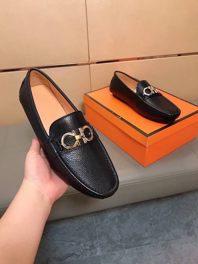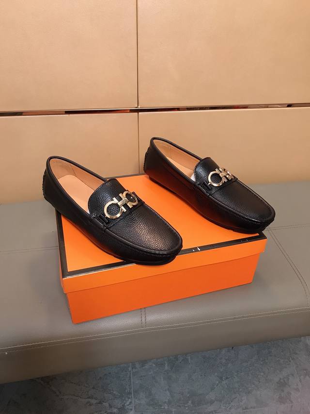 工厂P价 菲拉格慕 .男士休闲豆豆鞋,全新款上市,采用进口意大利牛皮,水染猪皮内里制作,橡胶耐磨大底,潮男订制,百搭款,配码 38-44