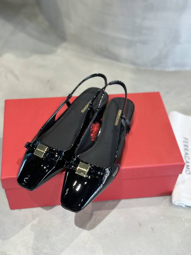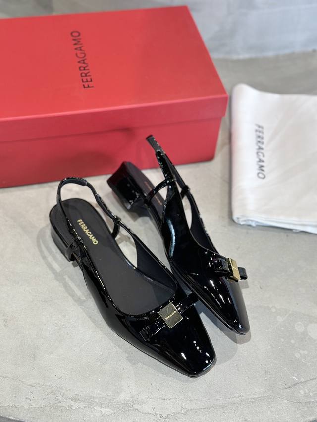 Ferraga*O菲拉*慕新版Vara小蝴蝶结方头后空玛丽珍凉鞋!