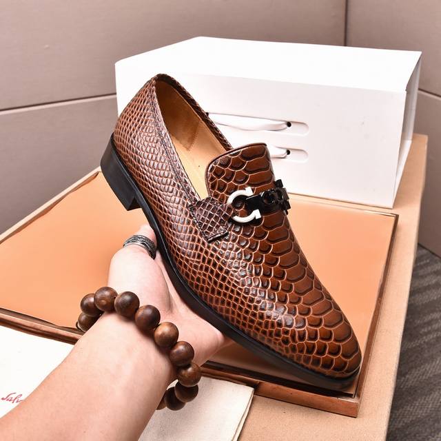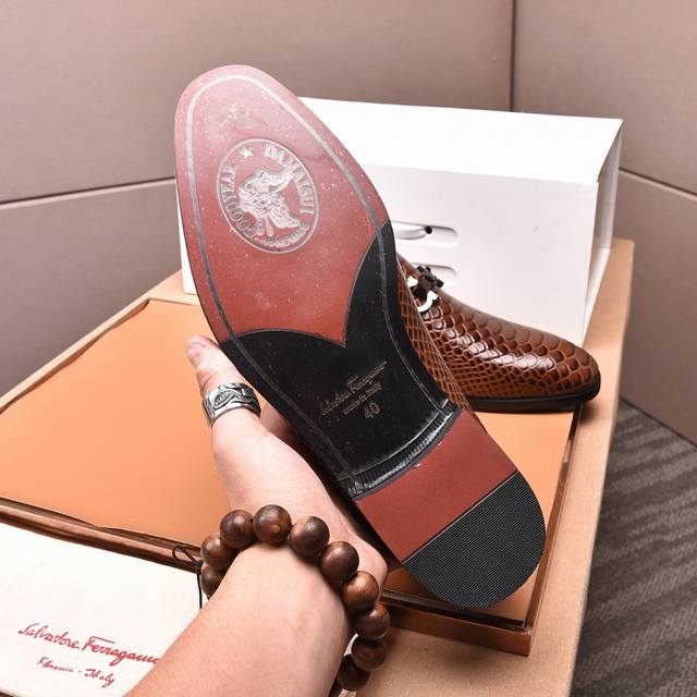 水染牛里 菲拉格慕 高端 Salvatore Ferragamo 是国际顶级的鞋类奢侈品牌,来自时尚王国意大利,以传统手工设计和款式新颖誉满全球 专柜同步发售新款西装鞋 此款采用纯手工制作 面料进口意大利原版头层牛皮 柔软水染牛皮内里 原版真标大底尺码规格:3845