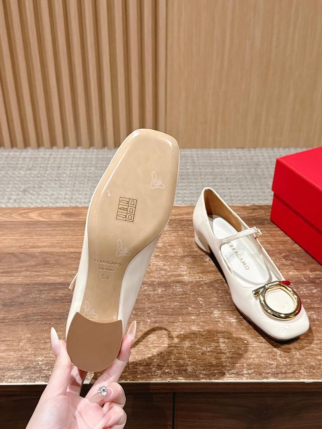 莞产 Salvatore Ferragamo 菲拉格慕粗跟玛丽珍 DDD 万年经典的玛丽珍款又回到了我们的视野,展现出更多不一样的风格,烂漫又随性的意式风情,脚感轻盈软糯,楦型能完美贴合双脚,它既拥有单鞋的舒适百搭,又能像高跟鞋一样优雅百变!这款单鞋在众多玛丽珍鞋款里脱颖而出! DDD 舒适百搭的同时也具备出色的耐用性,融合了时尚与舒适的完美平衡高雅风采!这款适合大多数的脚型,菲拉格慕与生俱来的优越感,简单的设计,集优雅与舒适度为一体,体现出你的高贵典雅气质,版型非常修脚,上脚更美,原版扣+面料 DDD