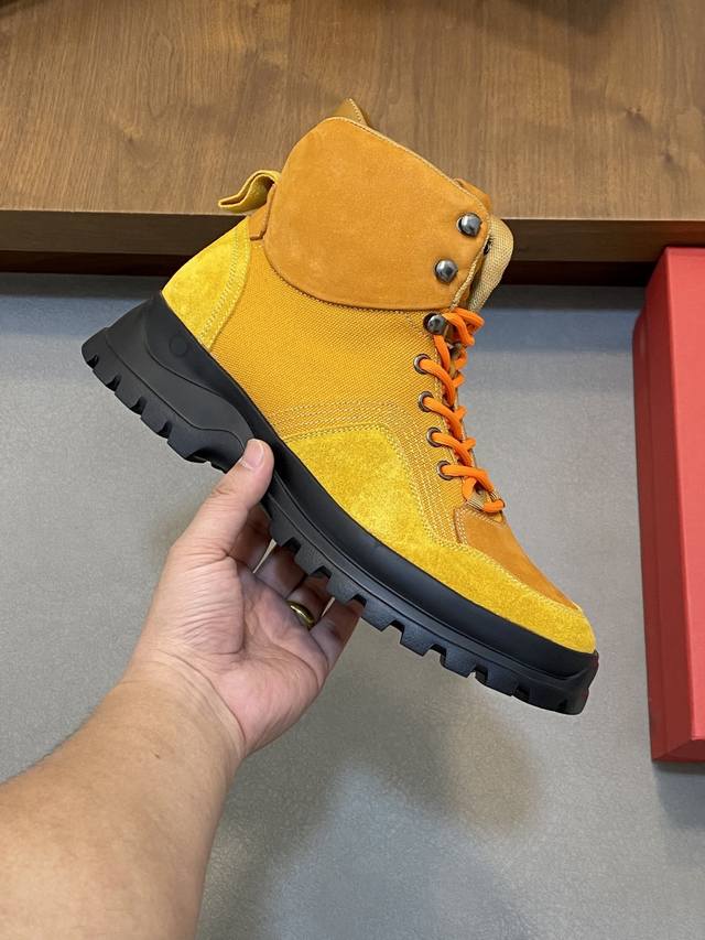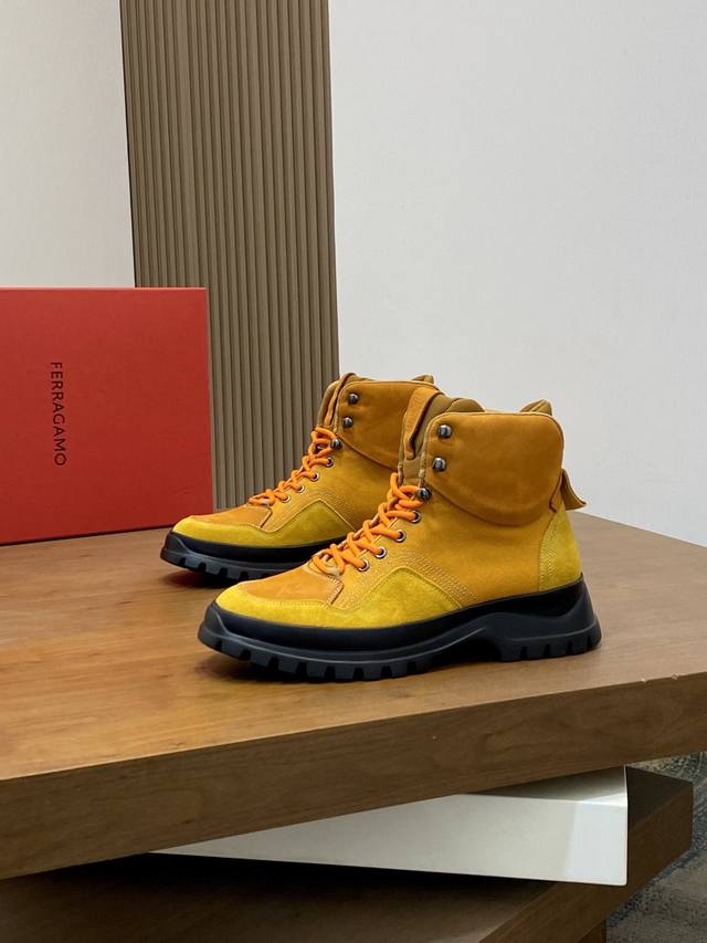 / Ferraga*菲拉格慕男士秋冬及踝靴,体现经典的优雅气质。高雅的外观搭配修长的版型,进口牛皮打造,舒适轻盈,套脚式穿脱方便,内里本染小牛皮,超轻发泡大底,后置