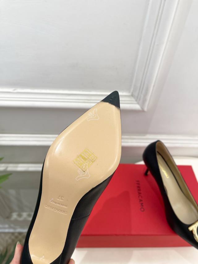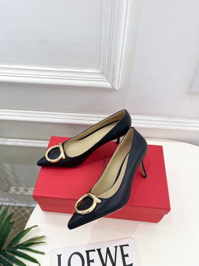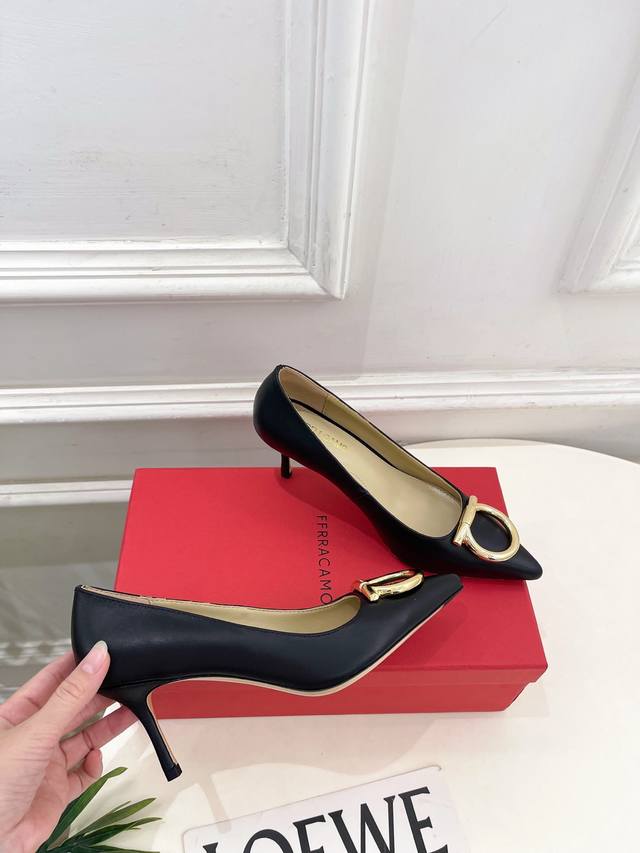 Ferragamo|菲拉格慕25 DDD 2025秋冬新品 经典尖头大号Gancini扣饰高跟鞋 火爆上新! DDD 这鞋绝对是黑马选手 颜值超高 网红博主火爆追捧 特让女神们心动 顶级工艺打造精品质感 无敌舒适 绝对是一见钟情款!Bs时尚百搭,人手必备! DDD 面料:原版定制小牛皮 DDD 内里:混种羊皮里 DDD 鞋底:原版意大利进口真皮大底 DDD 跟高:4Cm 7Cm DDD Size:35-39 40.41定制不退换 DDD 出厂价pp: DDD