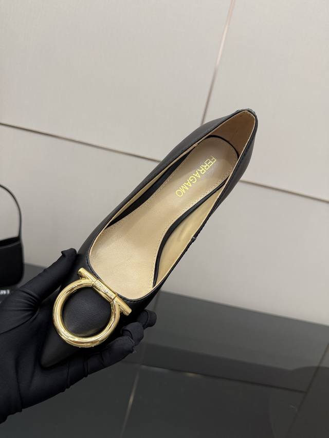 Ferragamo 25秋冬菲拉格慕时装单鞋加上搭配圆扣利落年轻的设计!舒适百搭的同时也具备出色的耐用性!融合了时尚与舒适的完美平衡高雅风采相信每个高跟女孩都会为之心动 Z品全身定制、五金、皮料、皮筋、大底完美一致 多对比市面上看图做货的区别哈 鞋面:牛皮 内里:进口绵羊皮 鞋底:真皮大底 跟高:4Cm和6.5Cm 码数:35-39 34.40.41定做不退换 全套包装