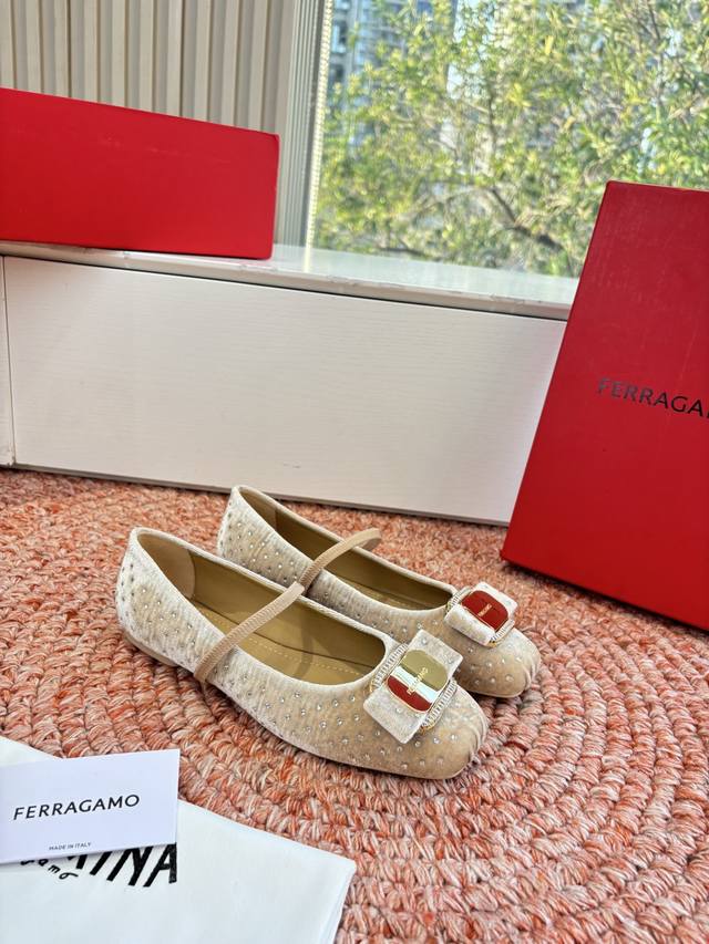 FFF G397所见即所得代购级 原版一比一复刻顶级Ferragamo菲拉格慕女士新版Vara铭牌玛丽珍乐福鞋上脚果然更惊艳~蝴蝶结,集美感与于一体的平底鞋,非常百搭,穿着不累脚 绝对入手不亏的一双! DDD 面料:金属羊皮 水钻羊绒 DDD 内里:羊皮 DDD 码数:35-39 40 41定制不退不换 DDD