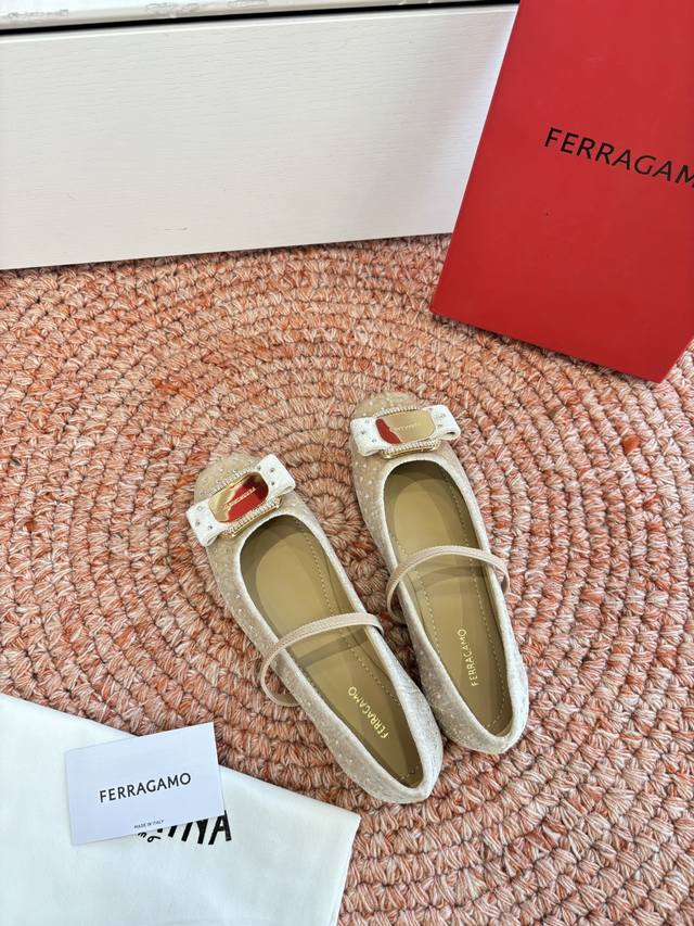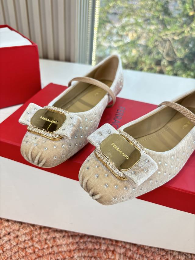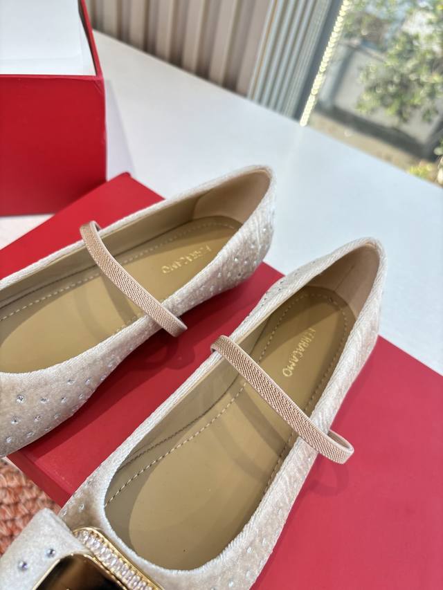 工厂P价P Ferragamo菲拉格慕2025春夏新款浅口女鞋 Sf标志性五金扣平底单鞋 内增高方头百搭芭蕾舞鞋...