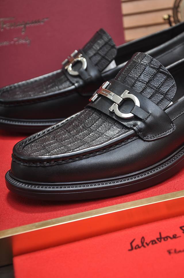 出厂价p Ferragamo 菲拉格幕 高端牛里 新款 Ferragamo* 顶级版本 菲拉格幕经典正装皮鞋!选用进口原版牛皮,内里头层舒适牛皮内里!原版耐磨橡胶大底!高品质精品!码数38-44! DDD
