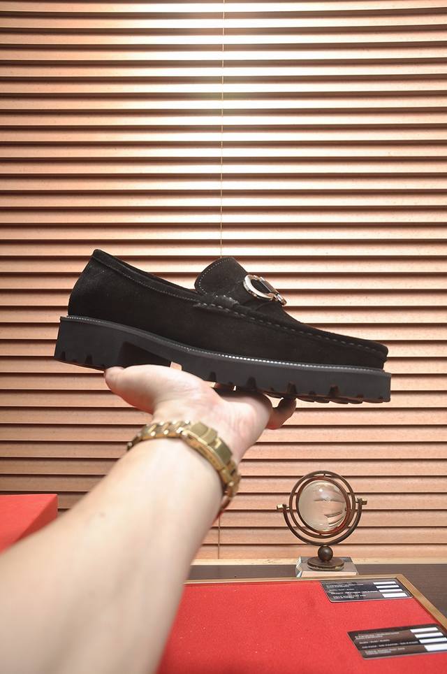 商品商标 Ferragamo 菲拉格慕 休闲皮鞋 正码码数: 38-44 45订的制 商品材料 精选 进口头层荔枝纹牛皮鞋面+原版五金扣...