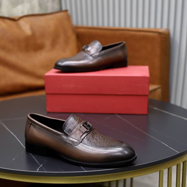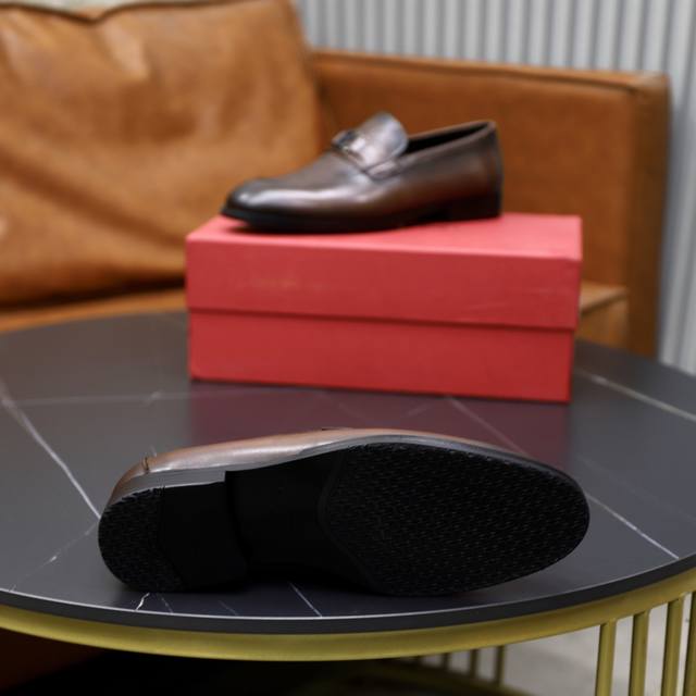 工厂p价p 实价 水染牛里 Salvatore Ferragamo 菲拉格慕 男士最新款休闲商务皮鞋 同步上市 面料采用专用进口原版荔枝纹小牛皮...