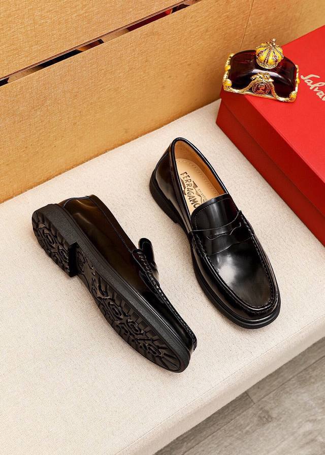 Ferragamo 菲拉格慕 经典的男士商务皮鞋,进口黑色小牛皮,牛皮内里,皮质非常柔软,原版真皮大底,码数39-44码 38 45 46 47定做 ,