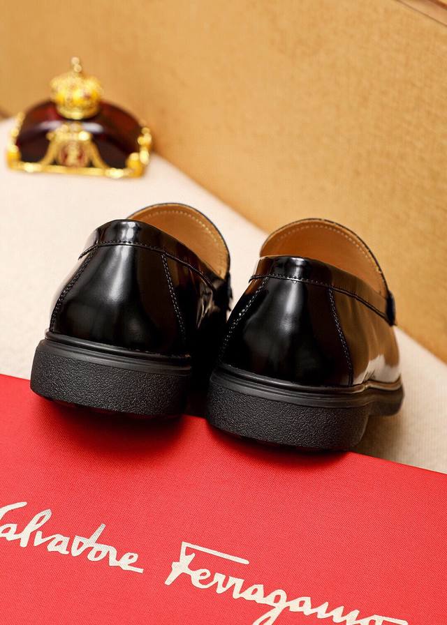 工厂p价p 实价 水染牛里 Salvatore Ferragamo 菲拉格慕 男士最新款休闲商务皮鞋 同步上市 面料采用专用进口原版开边珠小牛皮...