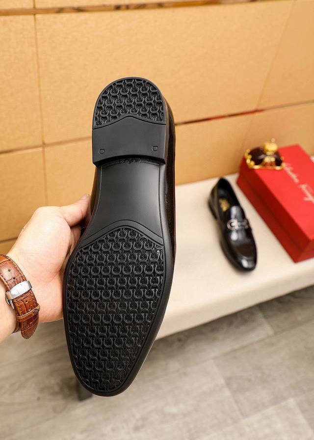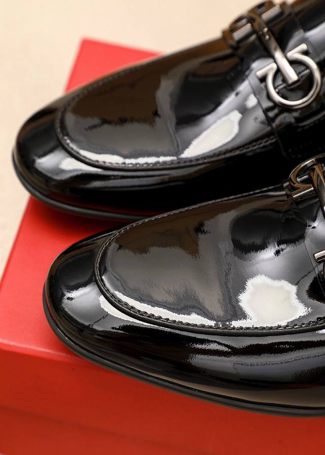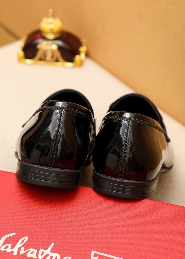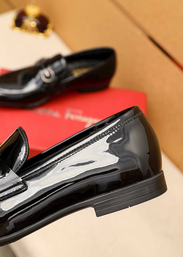 / 商品商标:Ferragamo 菲拉格慕 休闲皮鞋 正码码数: 38-44 45订制 商品材料:精选 进口头层漆皮鞋面+经典五金扣,进口水染牛皮内里。强烈立体视觉