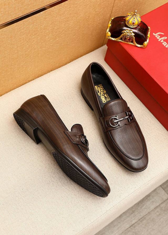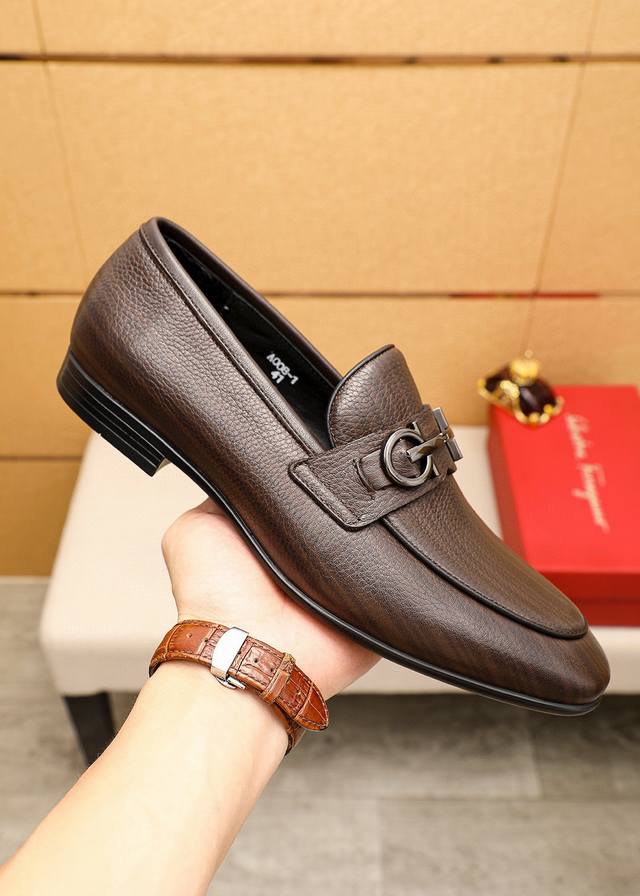 / 商品商标:Ferragamo 菲拉格慕 休闲皮鞋 正码码数: 38-44 45订制 商品材料:精选 进口头层荔枝纹牛皮鞋面+经典五金扣,进口水染牛皮内里。强烈立