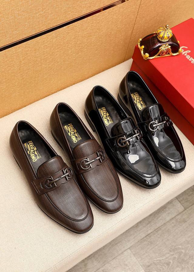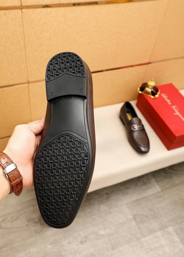 商品商标 Ferragamo 菲拉格慕 休闲皮鞋 正码码数: 38-44 45.46订制 商品材料 精选 进口头层荔枝纹牛皮鞋面+奢华五金扣...