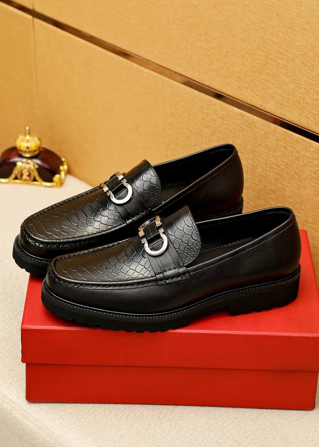 商品商标:Ferragamo 菲拉格慕 休闲皮鞋 正码码数: 38-44 45.46订制 商品材料:精选 进口头层小牛皮鞋面+原版五金扣,进口水染牛皮内里。强烈立体视觉效果,原版大底 颜 色:2色可选