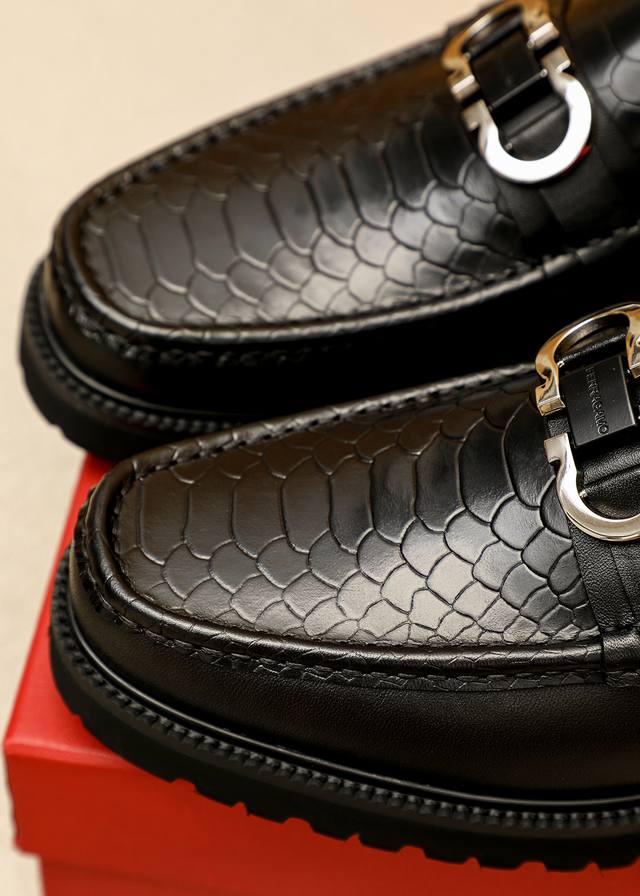商品商标 Ferragamo 菲拉格慕 休闲皮鞋 正码码数: 38-44 45订的制 商品材料 精选 进口头层荔枝纹牛皮鞋面+原版五金扣...