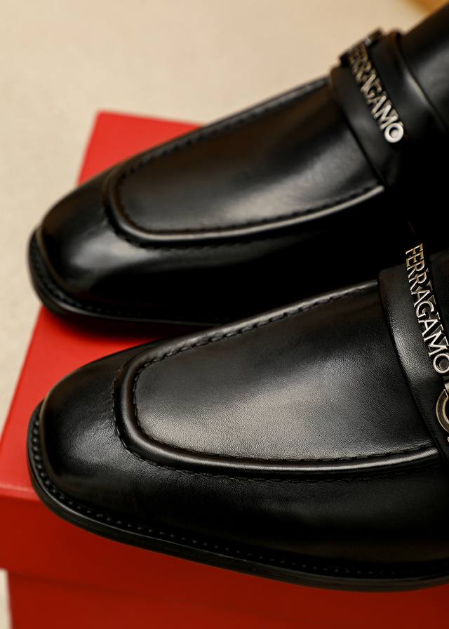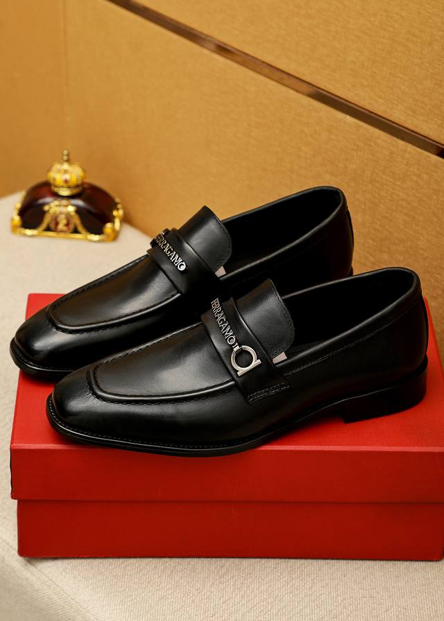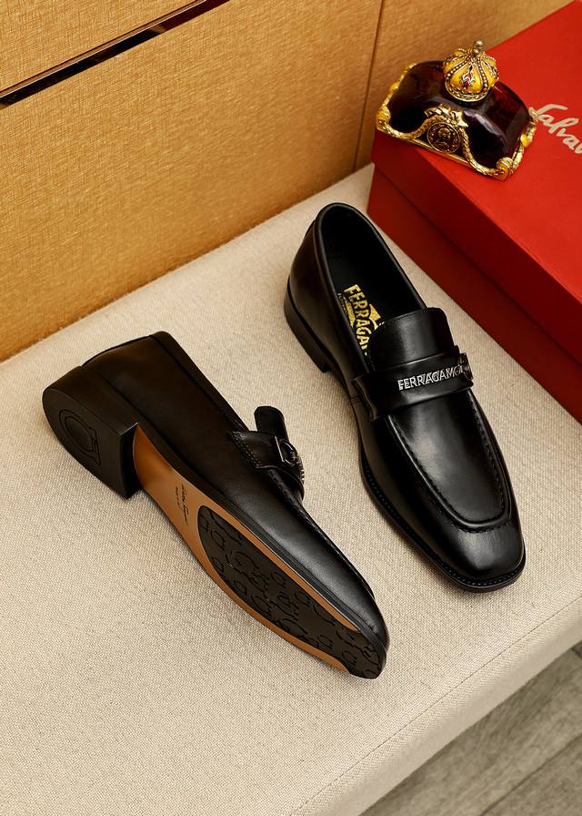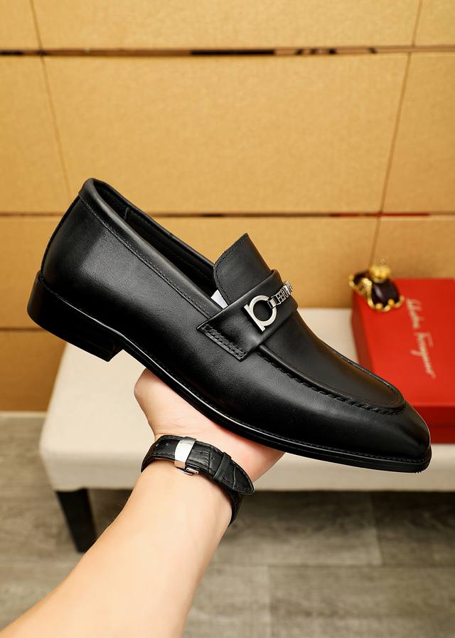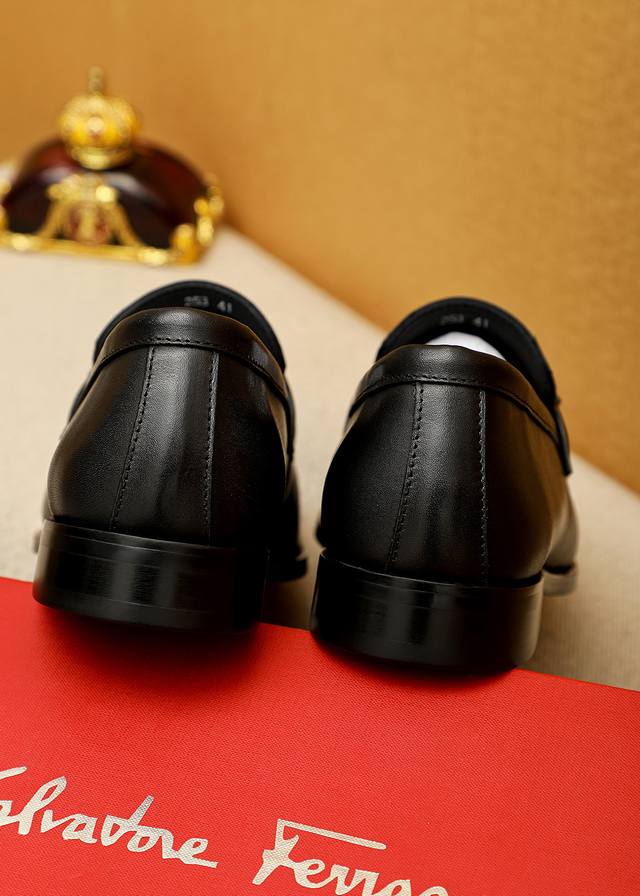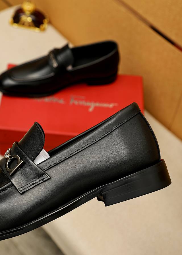 菲拉格慕高端真皮大底正装皮鞋 采用进口牛皮鞋面 柔软有型 手工改色工艺 低调奢华气质 舒适透气版型 小牛皮真皮垫脚...