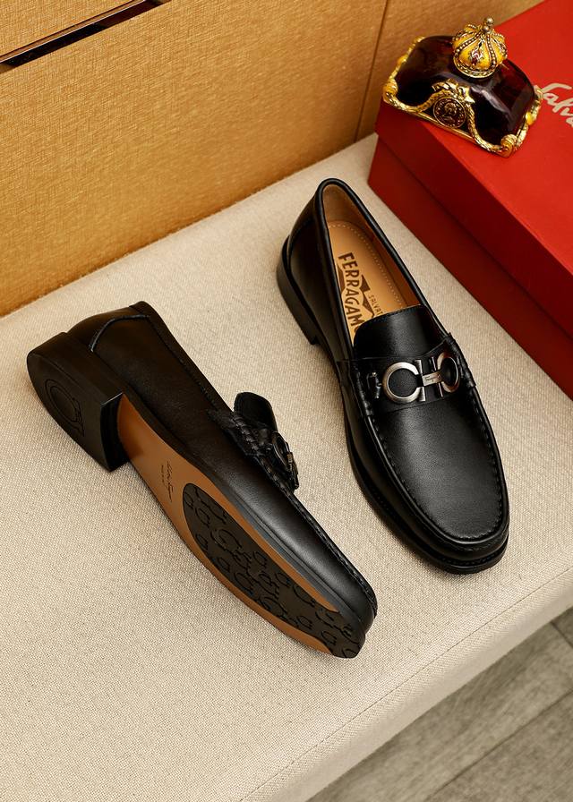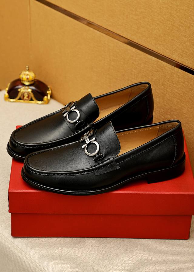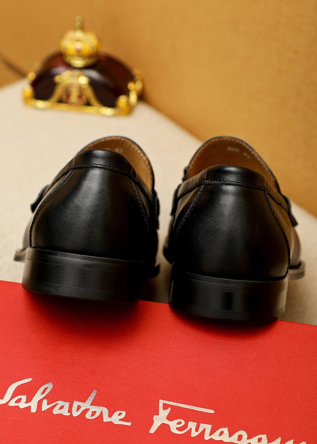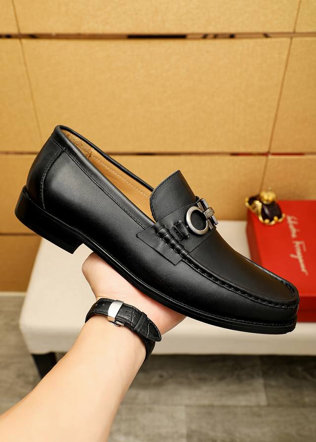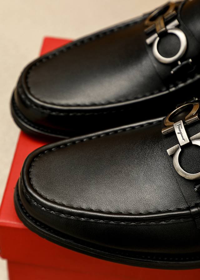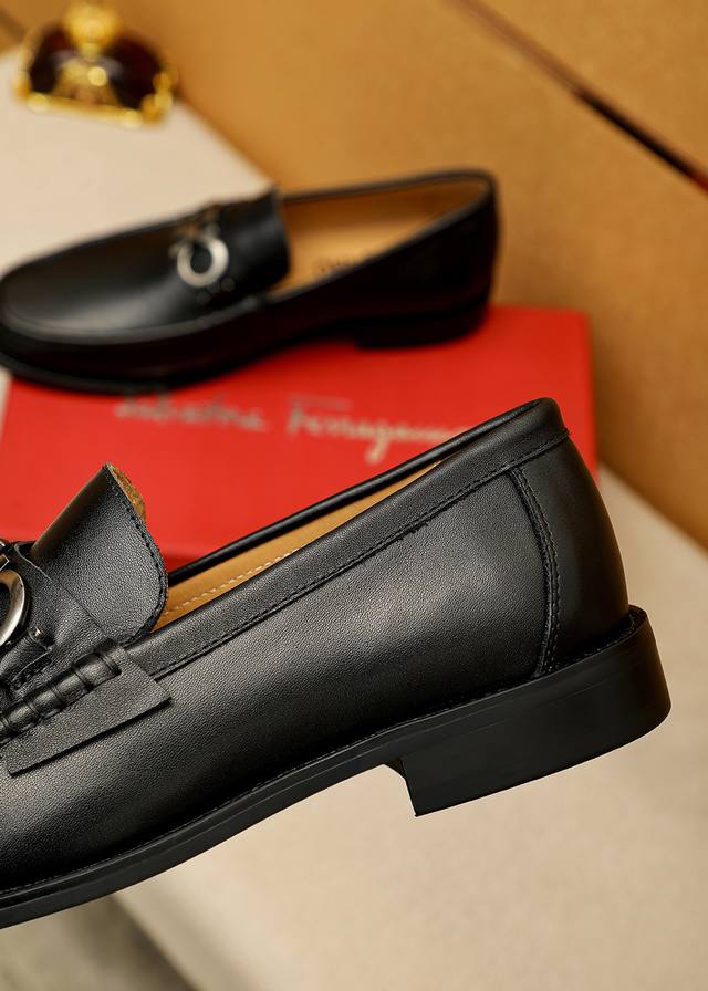 商品商标:Ferragamo 菲拉格慕 休闲皮鞋 DDD 正码码数: 38-44 45.46订制 DDD 商品材料:精选 进口头层小牛皮鞋面+奢华五金扣,进口水染牛皮内里。强烈立体视觉效果,原版大底 DDD 颜 色:1色可选 DDD