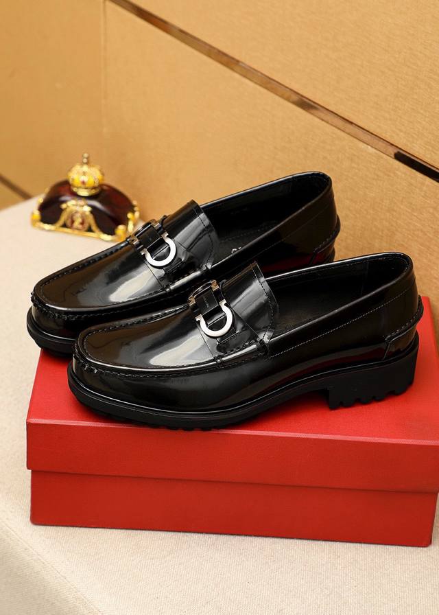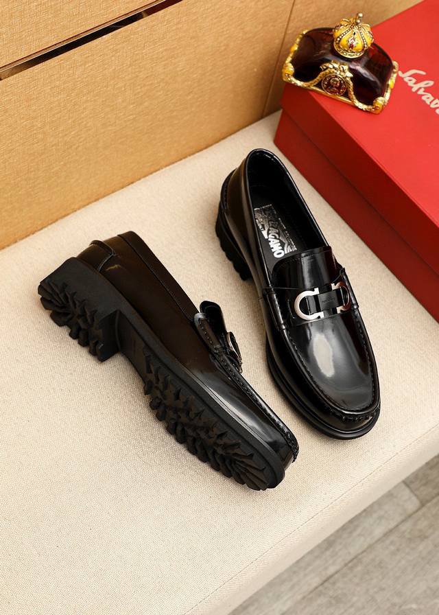 商品商标:Ferragamo 菲拉格慕 休闲皮鞋 Ddd 正码码数: 38-44 45.46订制 Ddd 商品材料:精选 进口开边珠牛皮鞋面+经典五金扣,进口水染牛皮内里。强烈立体视觉效果,原版大底 Ddd 颜 色:1色可选 DDD