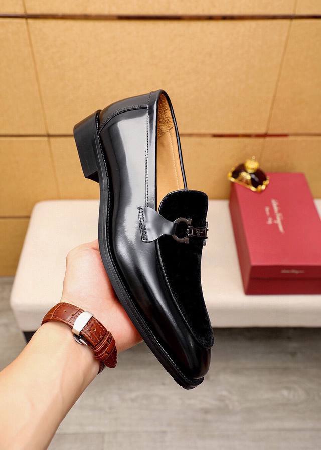 / 商品商标:Ferragamo 菲拉格慕 休闲皮鞋 正码码数: 38-44 45.46.47订制 商品材料:精选 进口头层高丝光小牛皮鞋面+奢华五金扣,进口水染牛