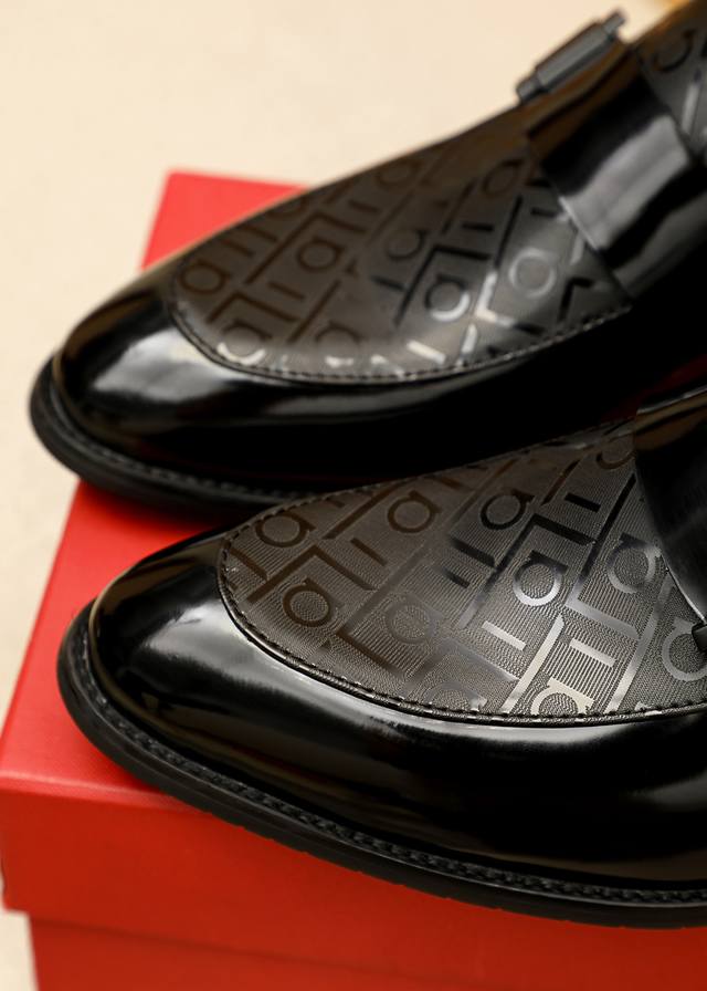 商品商标 Ferragamo 菲拉格慕 休闲皮鞋 正码码数: 38-44 45.46.47订的制 商品材料 精选 进口头层小牛皮压花鞋面+原版五金扣...
