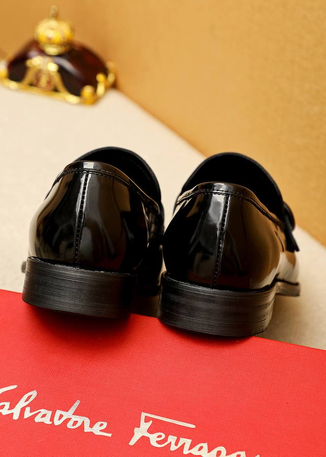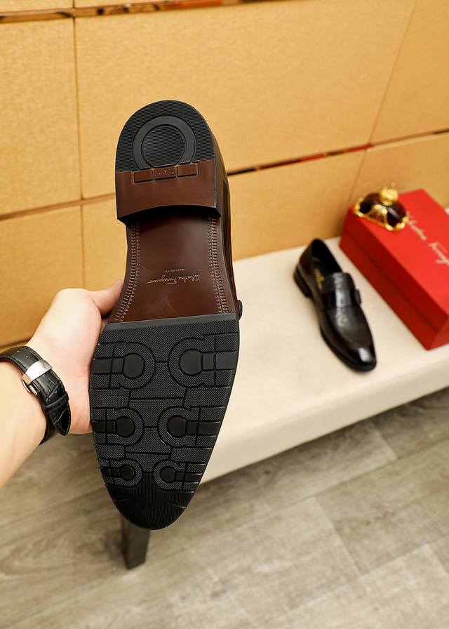 工厂p价p 实价 水染牛里 Salvatore Ferragamo 菲拉格慕 男士最新款休闲商务皮鞋 同步上市 面料采用专用进口原版荔枝纹小牛皮...