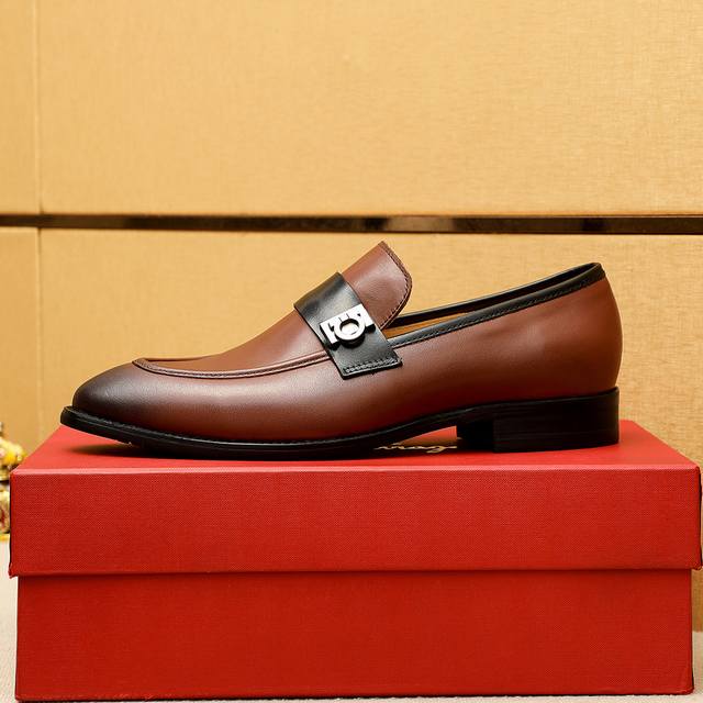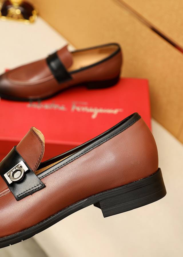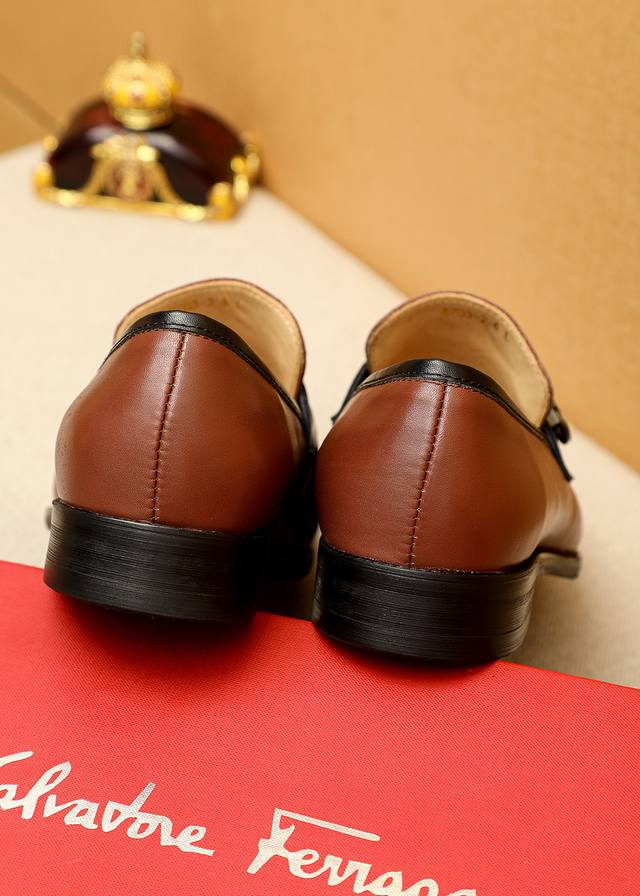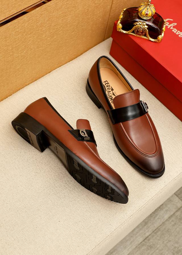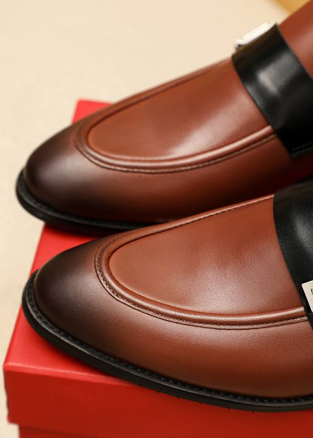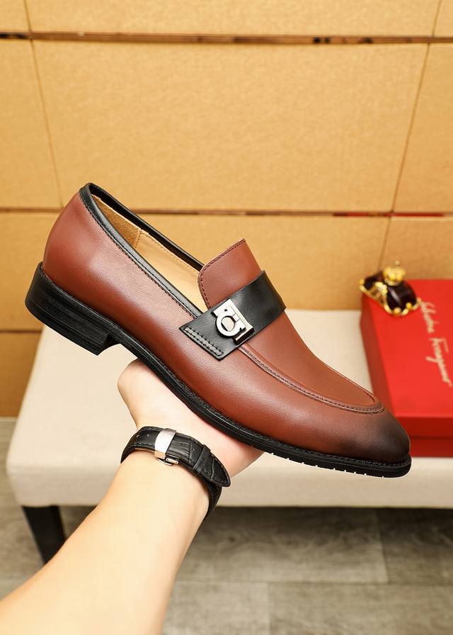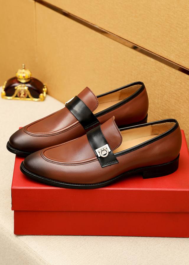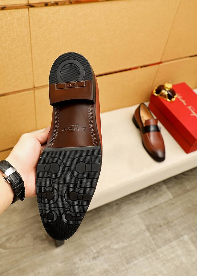 菲拉格慕Ferragamo男士精品皮鞋,鞋面进口牛皮,水染牛皮内里,真皮大底,标准码38-44 45定做不退不换 ,现货