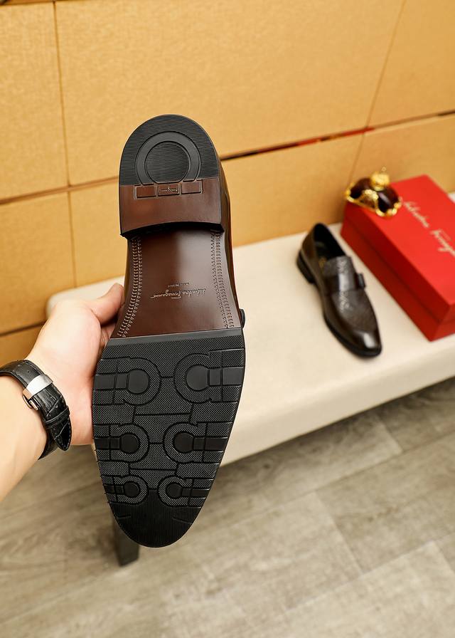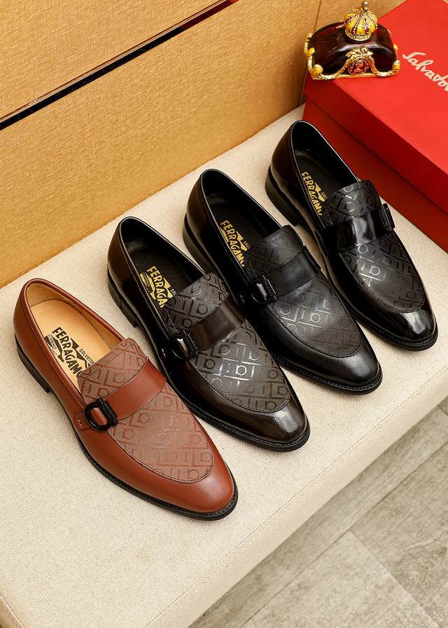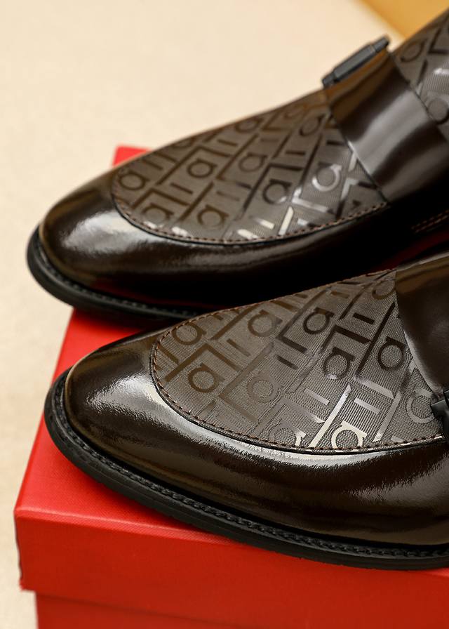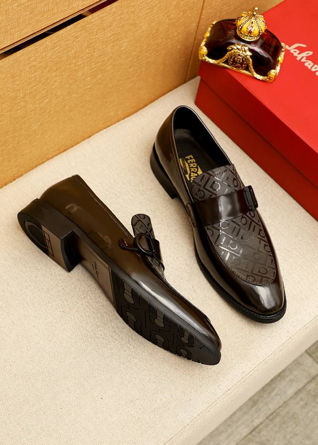 / 商品商标:Ferragamo 菲拉格慕 休闲皮鞋 正码码数: 39-44 38.45.46订制 商品材料:精选 进口开边珠牛皮压花鞋面+经典五金扣,进口水染牛皮