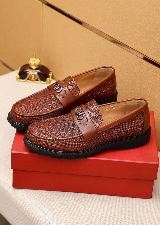 菲拉格慕Ferragamo男士精品皮鞋 鞋面进口牛皮 水染牛皮内里 真皮大底 标准码38-44 45定做不退不换
