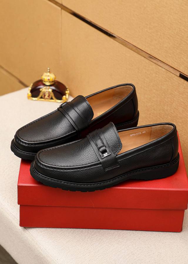 菲拉格慕Ferragamo 男士精品休闲皮鞋,顶级品质,鞋面进口牛皮 开边珠,水染牛皮内里,真皮大底,标准码数39-44 38.45.46定制 ,