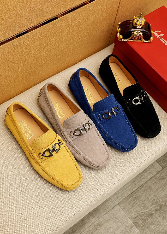 商品商标:Ferragamo 菲拉格慕 豆豆鞋 正码码数: 38-44 45.46订制 商品材料:精选 头层磨砂牛皮鞋面+奢华五金扣,进口牛皮内里。强烈立体视觉效果,原版大底 颜 色:4色可选