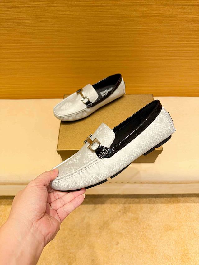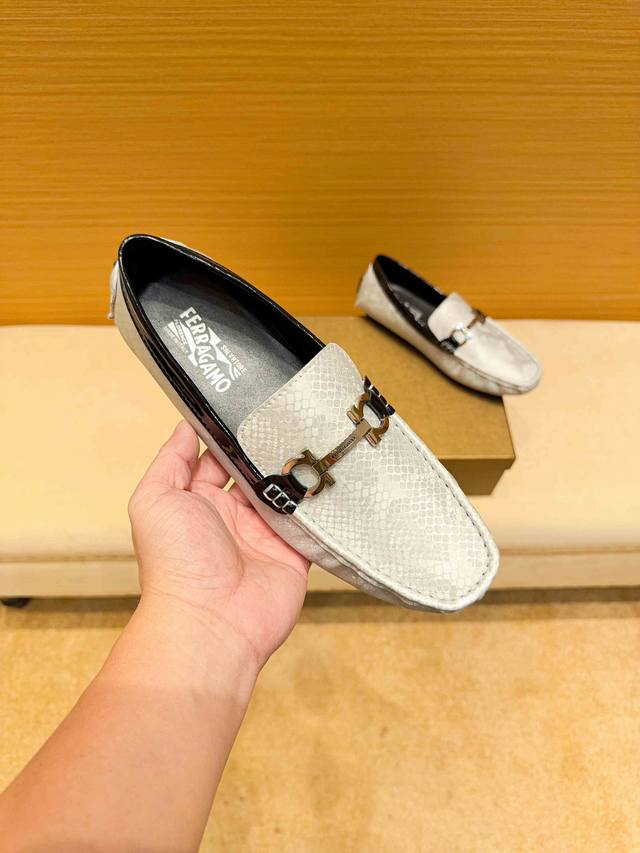 FFF 实价,牛里真材实料, 菲拉格慕 官网新款+爆款,意大利名模贵族们爆款,菲拉格慕时尚界的佼佼者,无可超越,市场高品质精品高端豆豆男鞋。明星同款,原单,采用进口原版蟒蛇皮+原版牛皮内里真材实料,法国殿堂级尊贵款售价9130瑞士法郎,法国巴黎时装周走秀款 ,一个品牌可以深植内心 ,一双鞋也可以让你流连忘返,穿出的不仅仅是尊贵,更是一种气场标准37-47 DDD