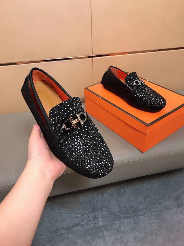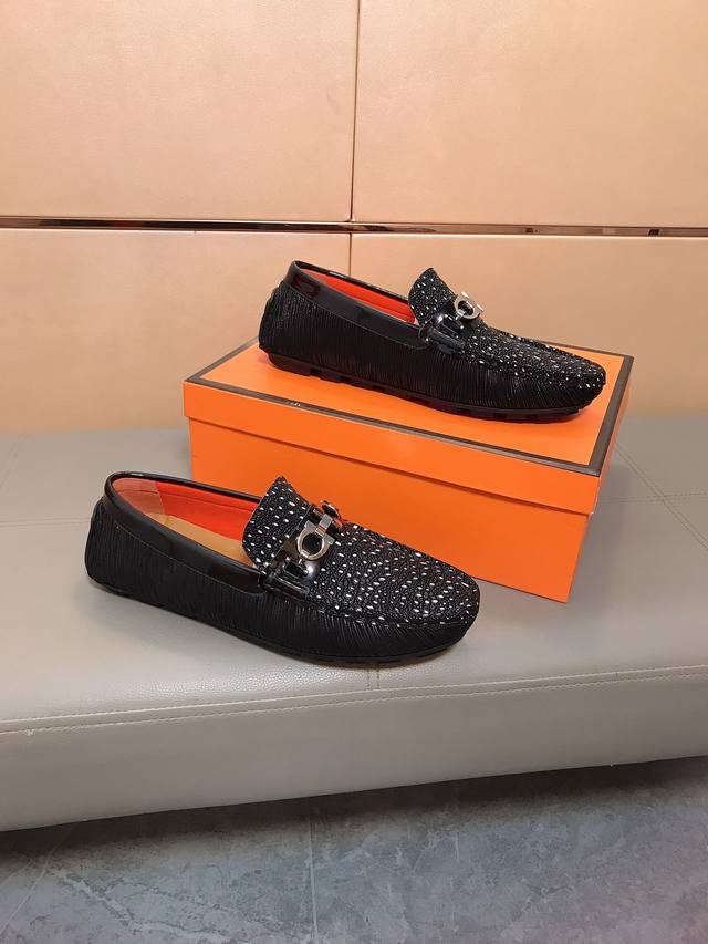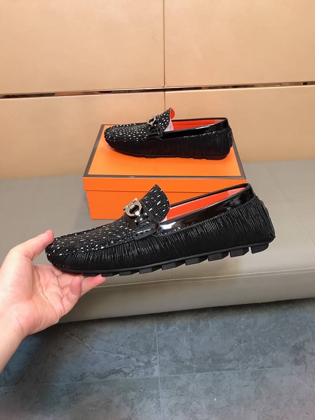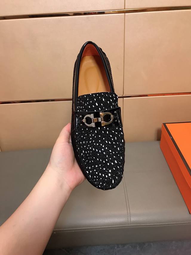 工厂P价 菲拉格幕 Ferragamo 新款男士豆豆鞋高品质做工精细,高端奢华鞋面采用进口意大利专用皮料,羊皮内里,牛皮垫脚,橡胶耐磨防滑大底,穿着透气舒适高品味男士首选码数38-44