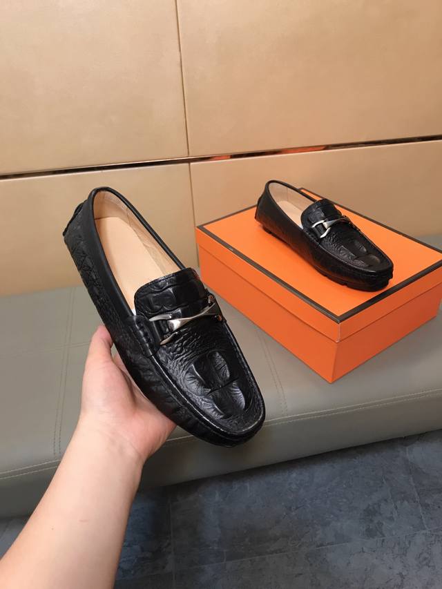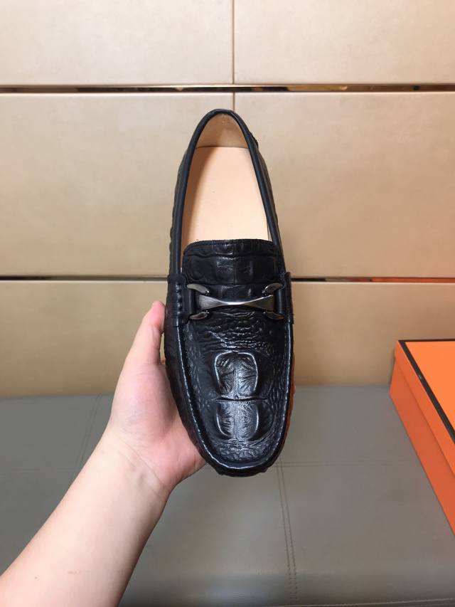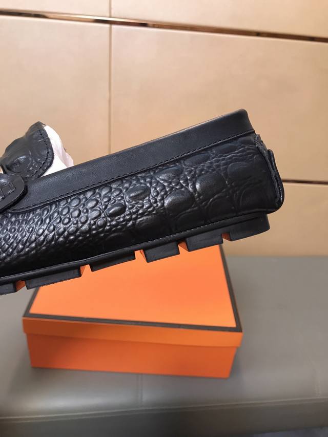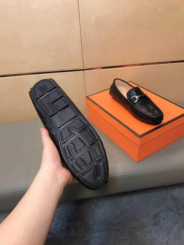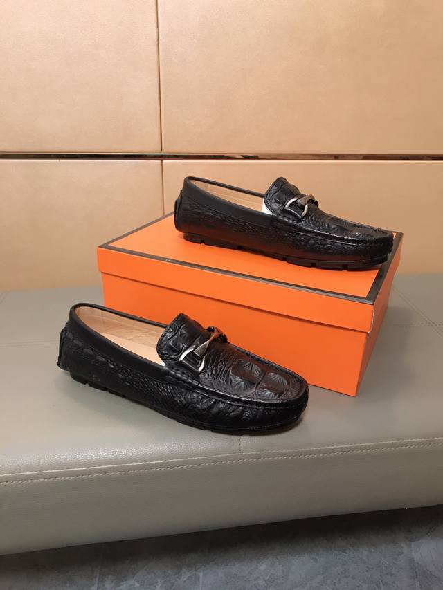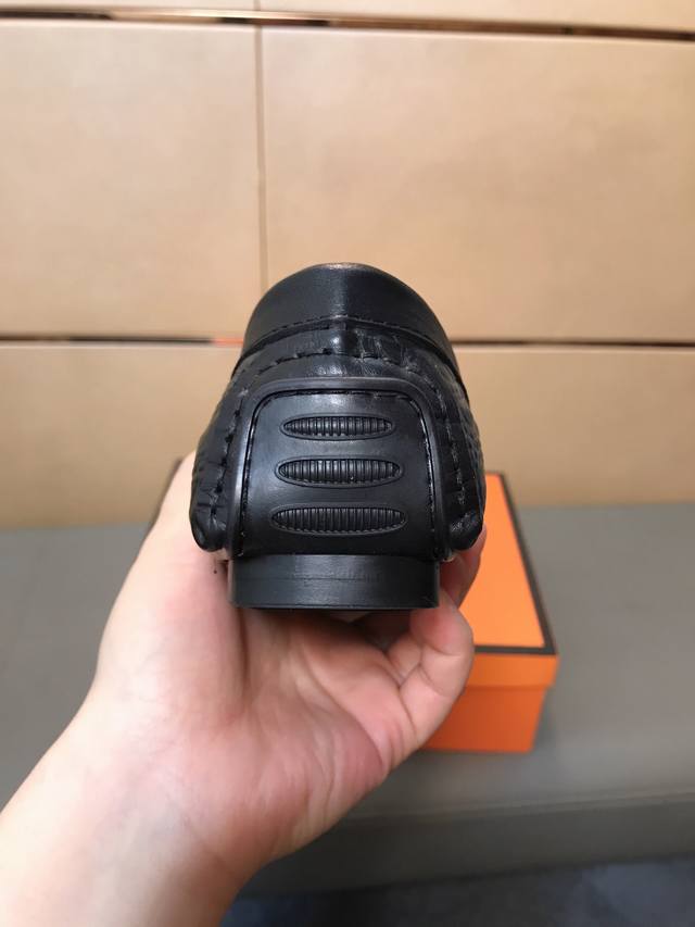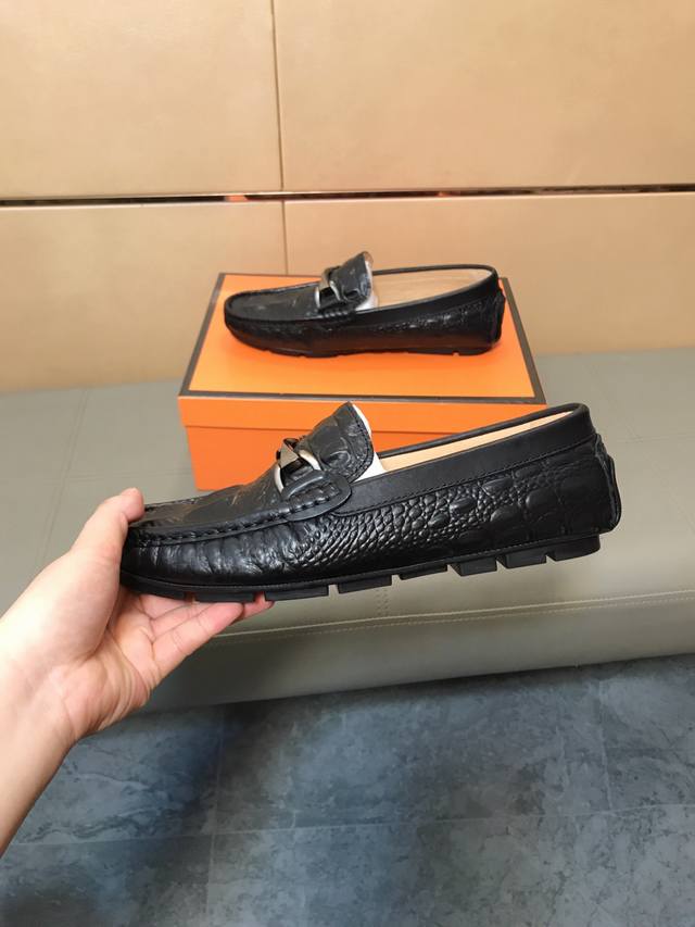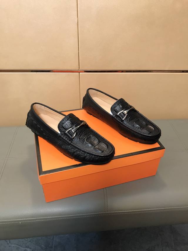 工厂P价 菲拉格慕 豆豆鞋系列新款来袭,男士套脚鞋。鞋面采用意大利压花牛皮,羊皮内里,皮质超软上脚很舒适 。版型搭配精密优美缝线,彰显低调奢华 ,舒适的鞋底设计最大限度的保证了穿着的舒适及防滑性,码数38-44