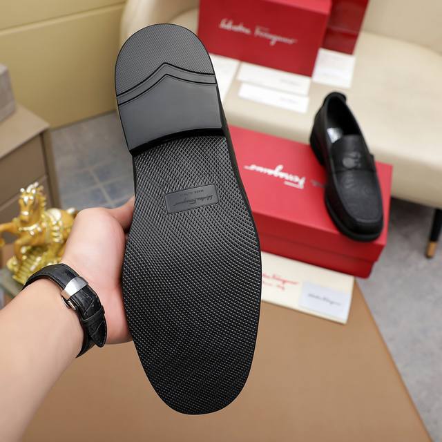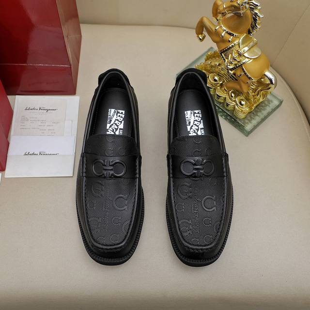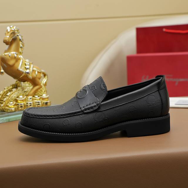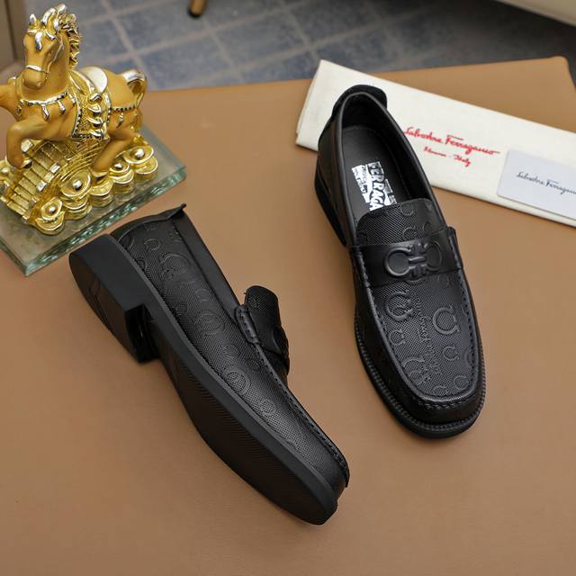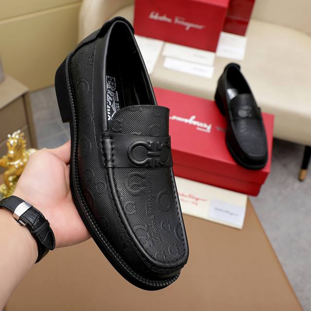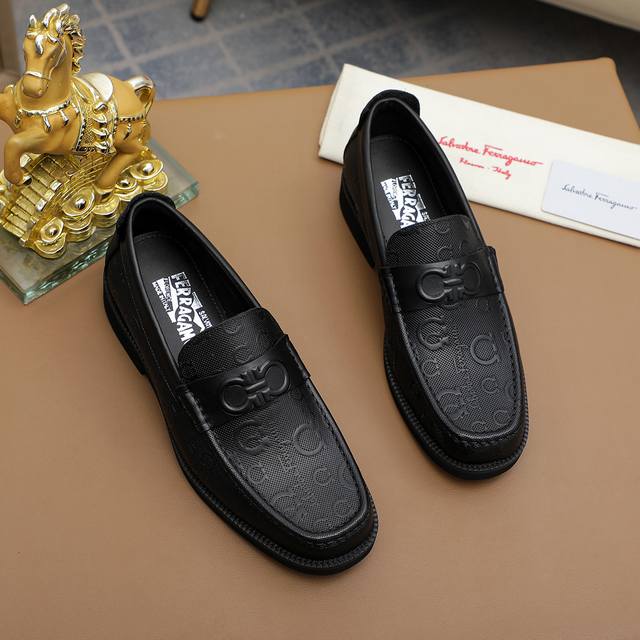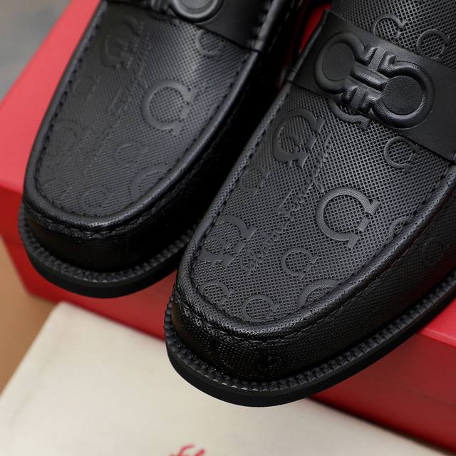 FFF 工厂P价 菲拉格慕[Ferragamo] 顶级进口西装男鞋官网原版复制,商品材料:精选 进口压纹小牛皮+奢华五金扣配件~进口水染牛皮内里。强烈立体视觉效果,原版组合大底 黑色可选 Size:38-44 .45.46.定做 DDD