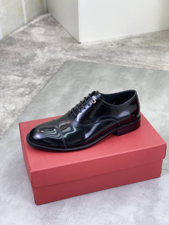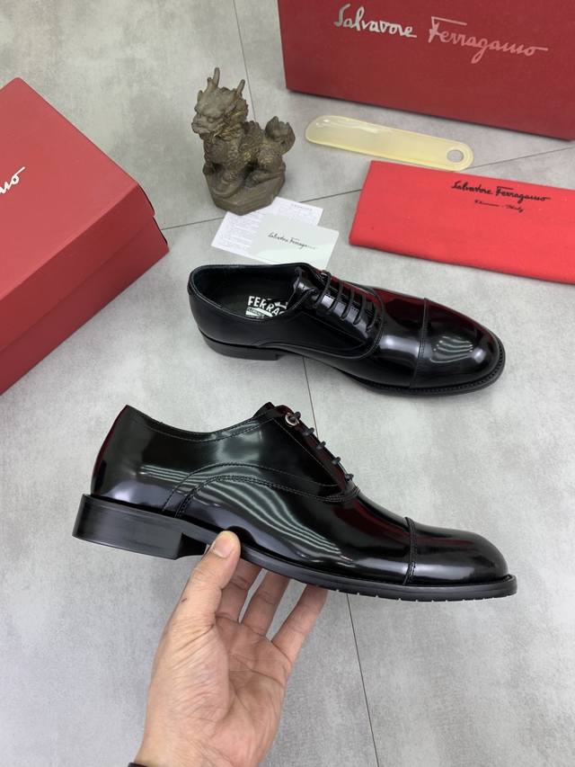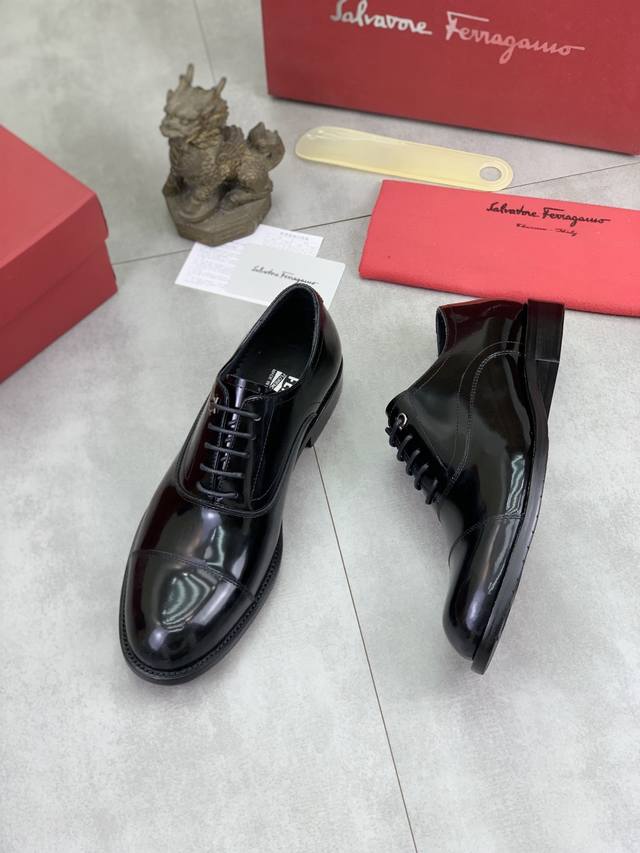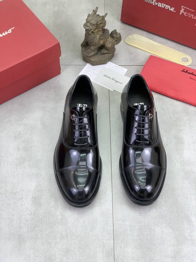 工厂p价p 实价 水染牛里 Salvatore Ferragamo 菲拉格慕 男士最新款休闲商务皮鞋 同步上市 面料采用专用进口原版开边珠小牛皮...
