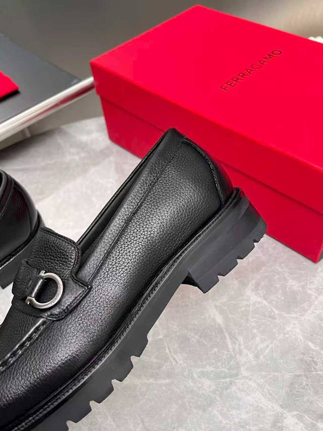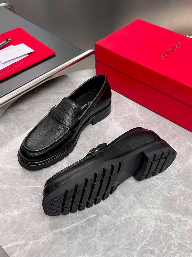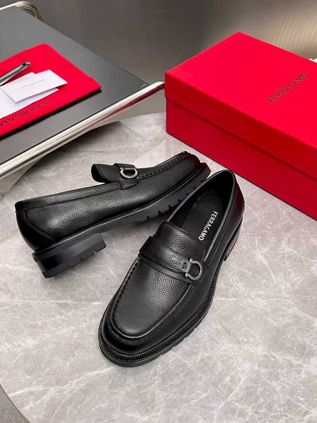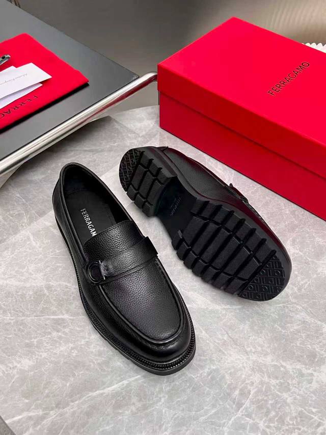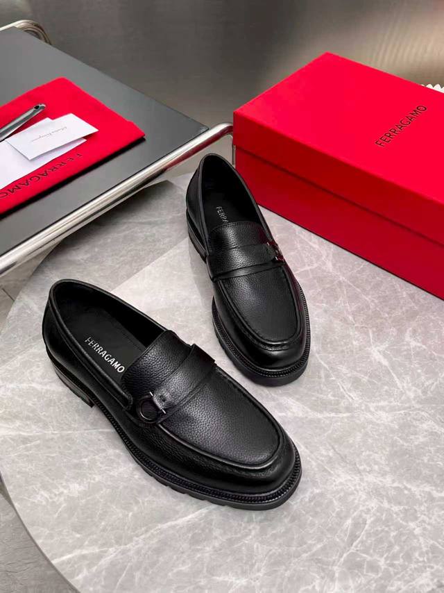 ferragamo 菲拉格慕 经典的男士商务皮鞋 进口黑色小牛皮 牛皮内里 皮质非常柔软 原版真皮大底 码数39-44码 38 45 46 47定做